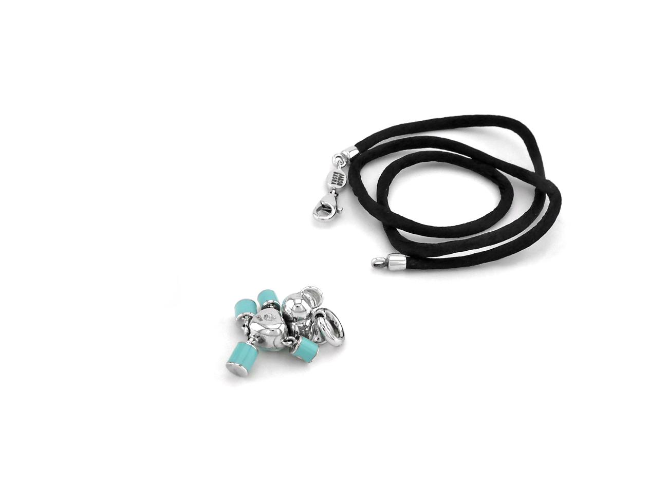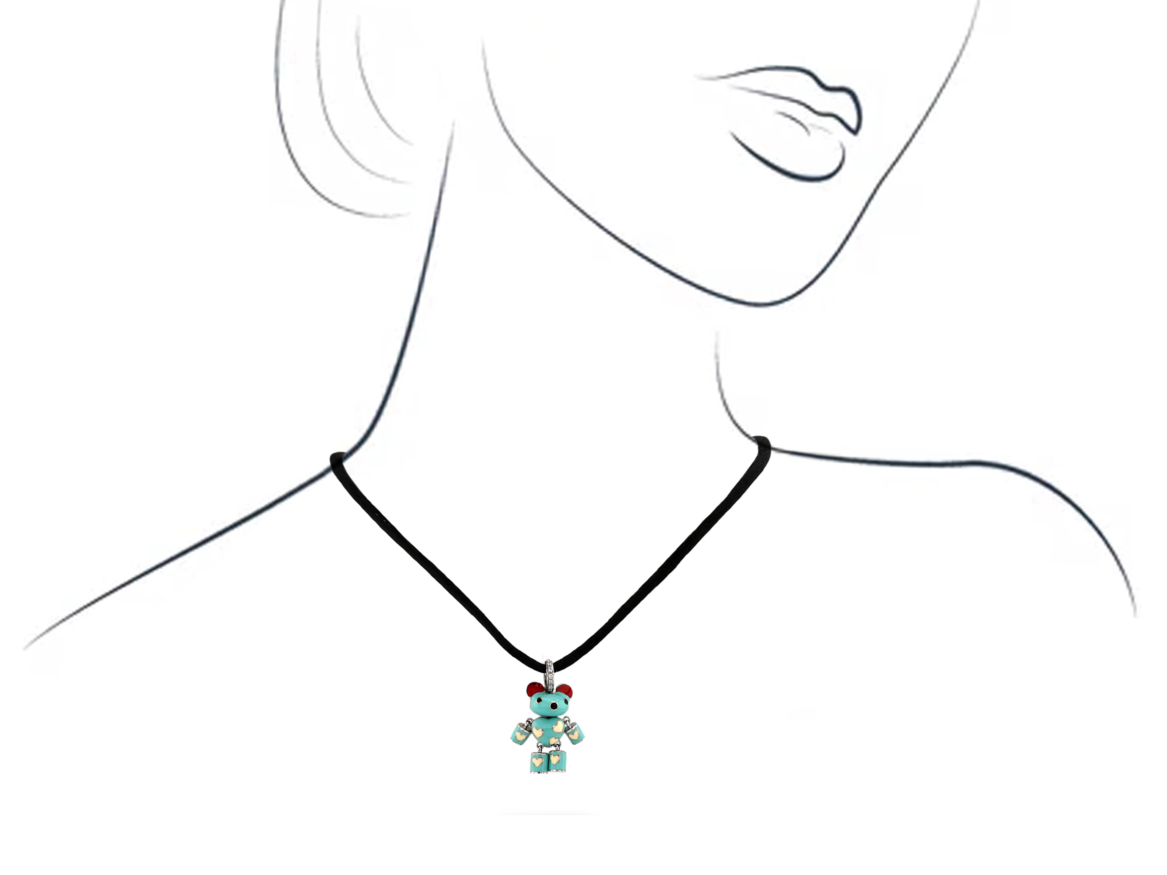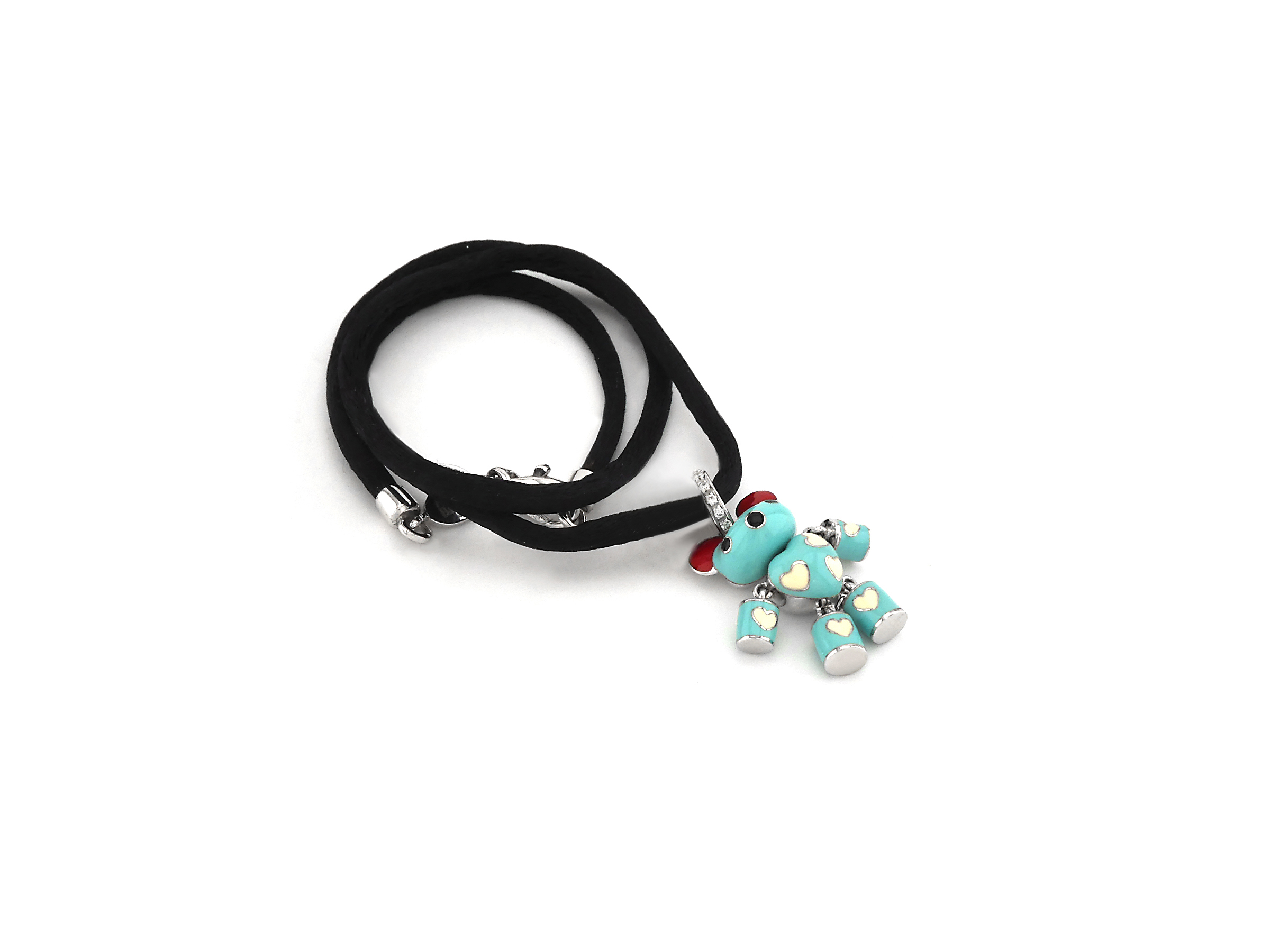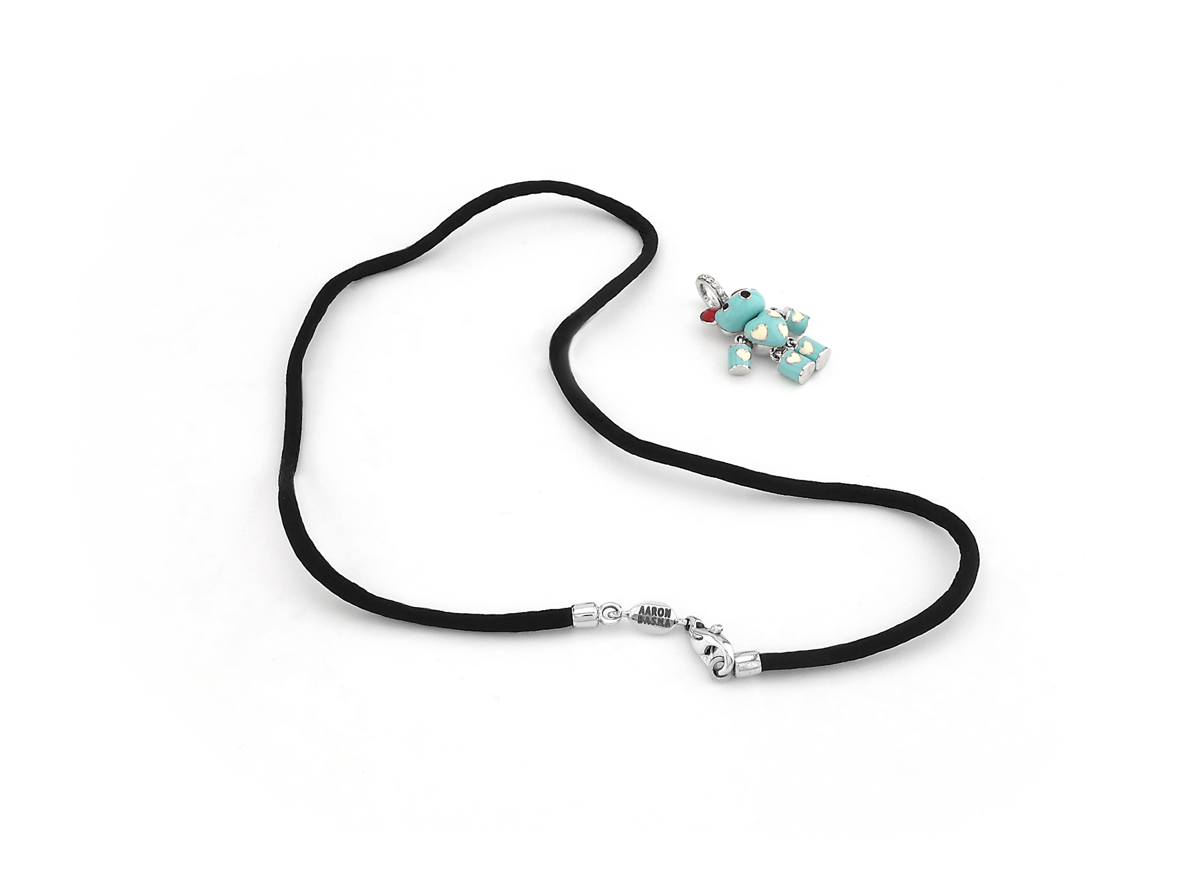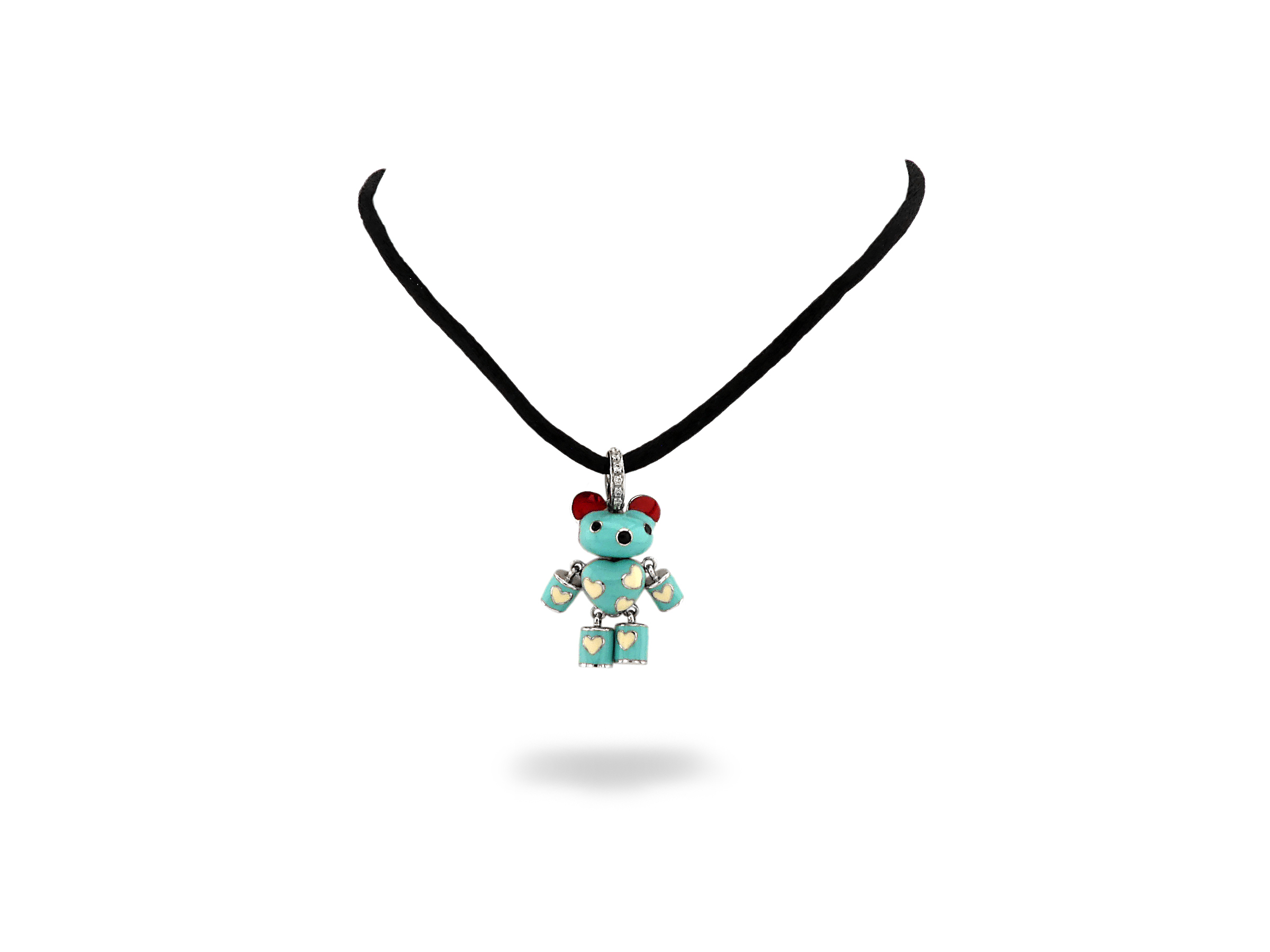 Aaron Basha Gold 'Toy Bear' Pendant with Enamel and Diamond on Silk Cord
