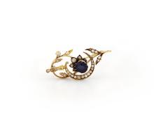 Antique Brooch Yellow Gold with Sapphire & Diampnd