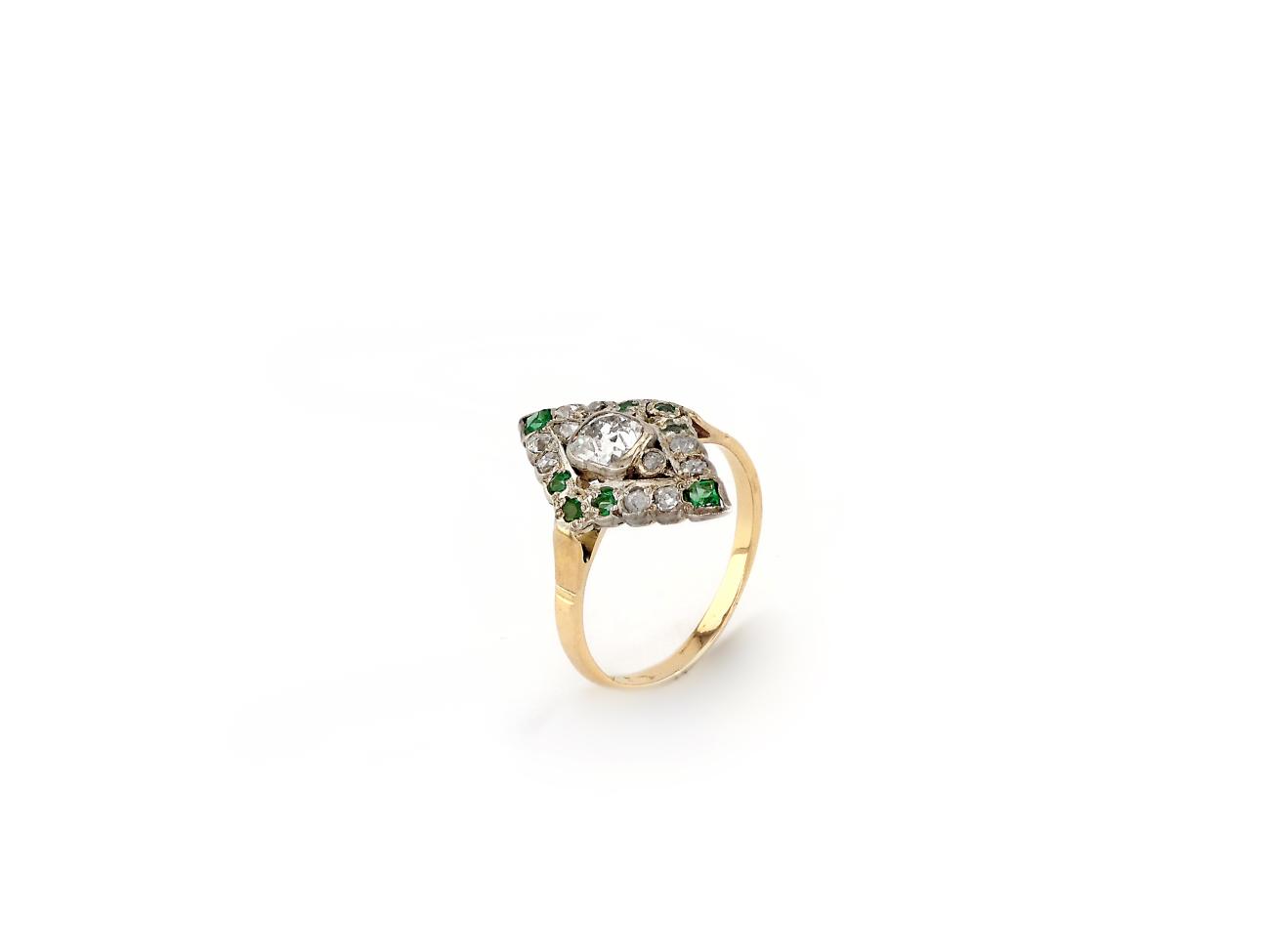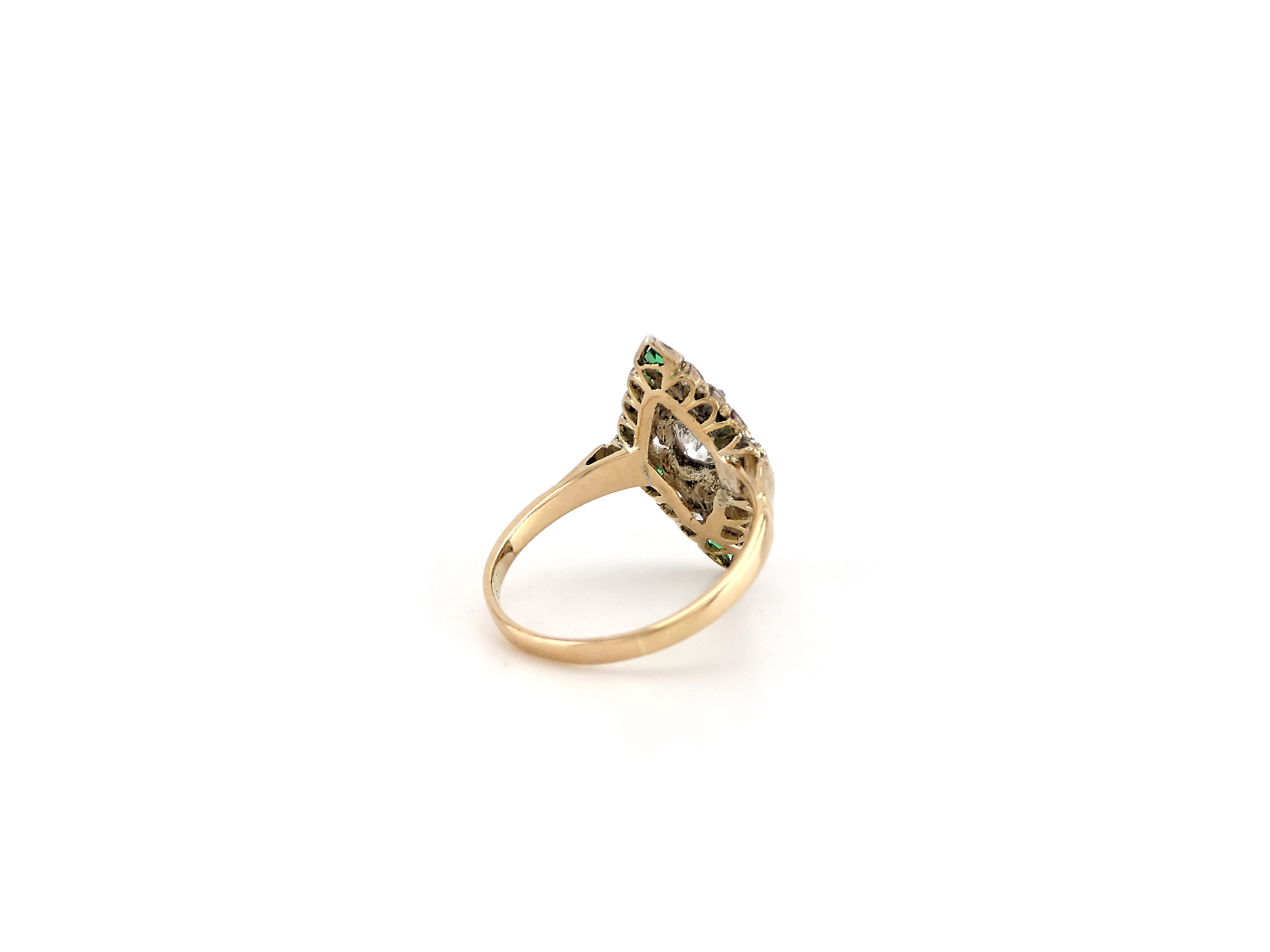 Antique Rose Gold Ring met Diamant en Groene Stenen