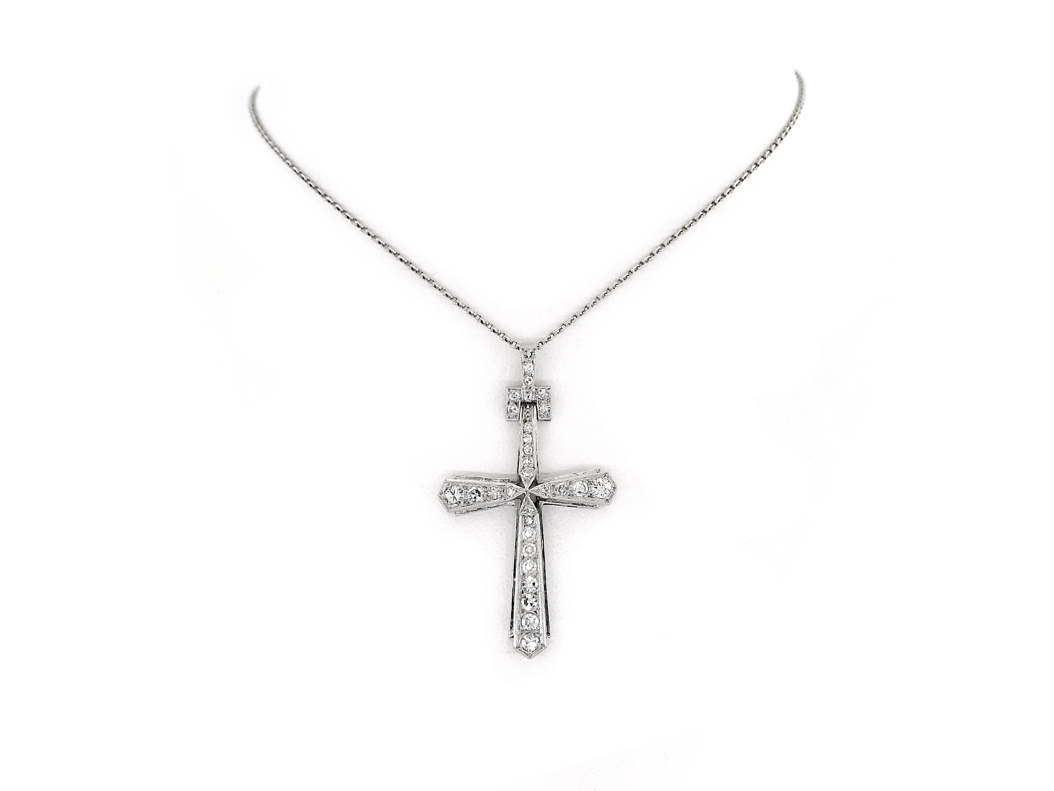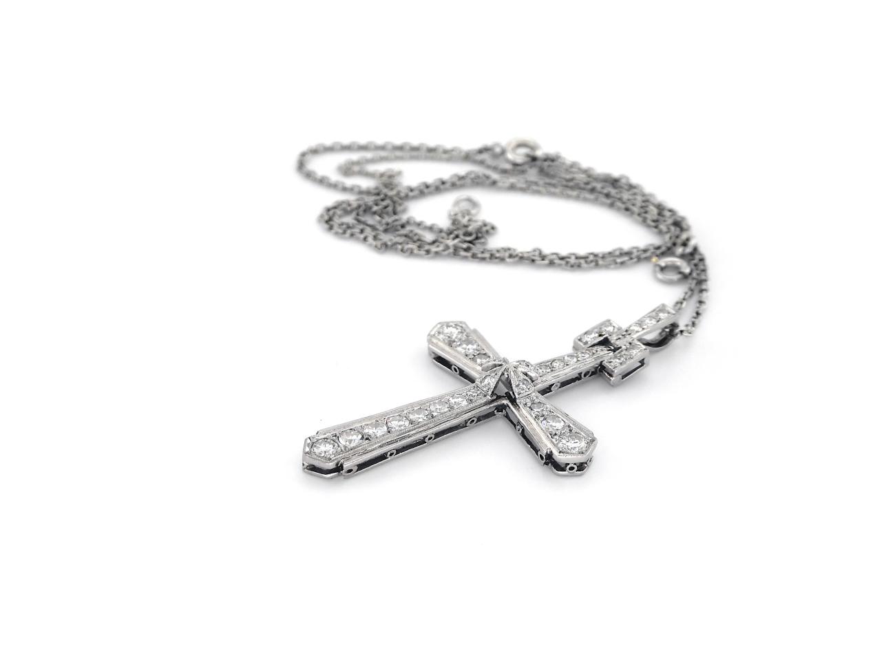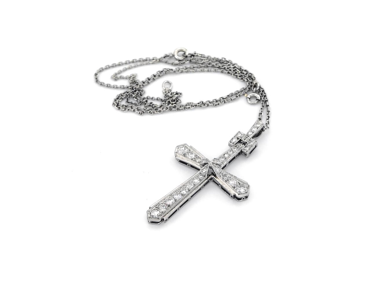 Art Déco Pendant with Diamond in Platinum on White Gold Chain