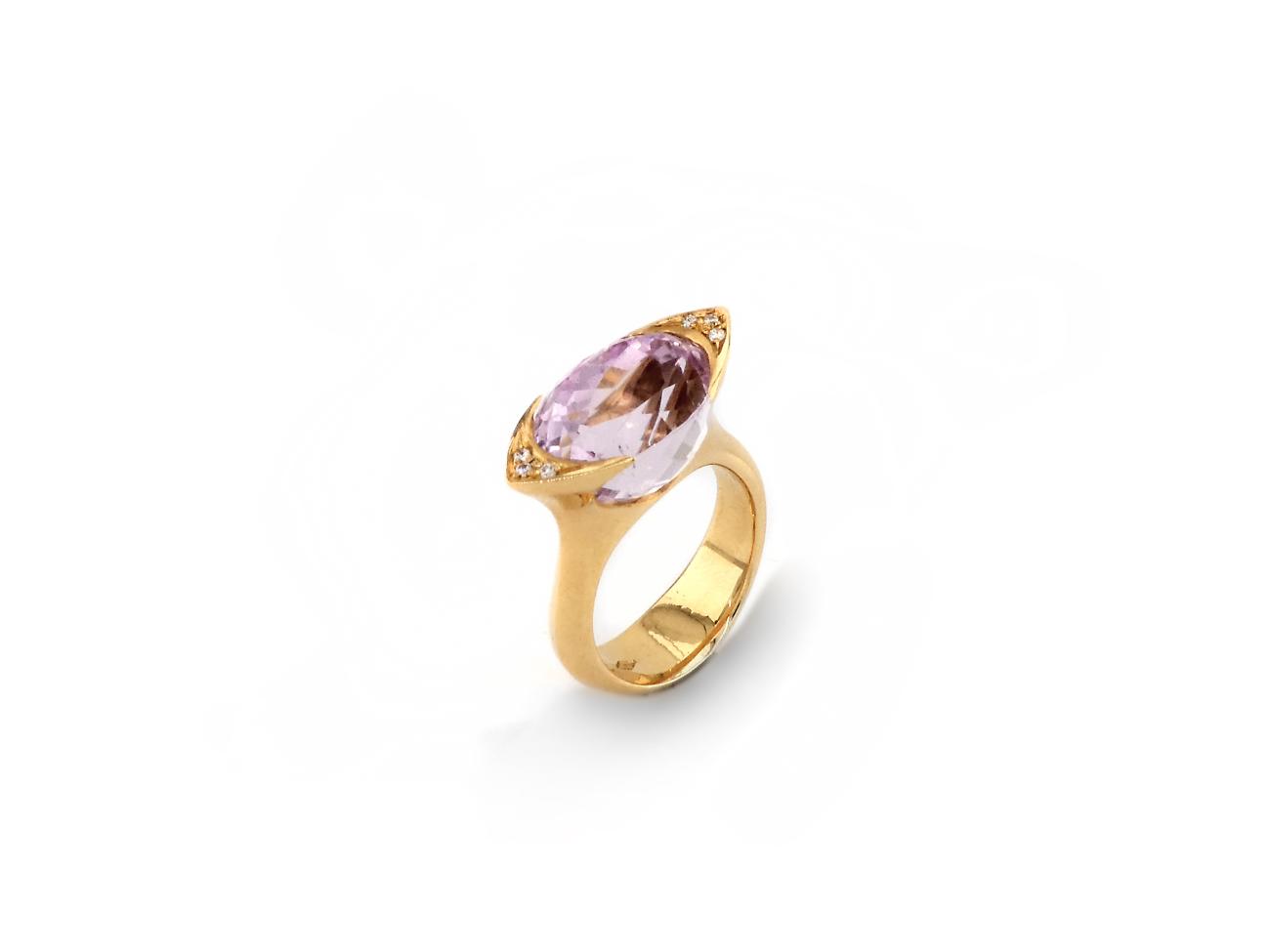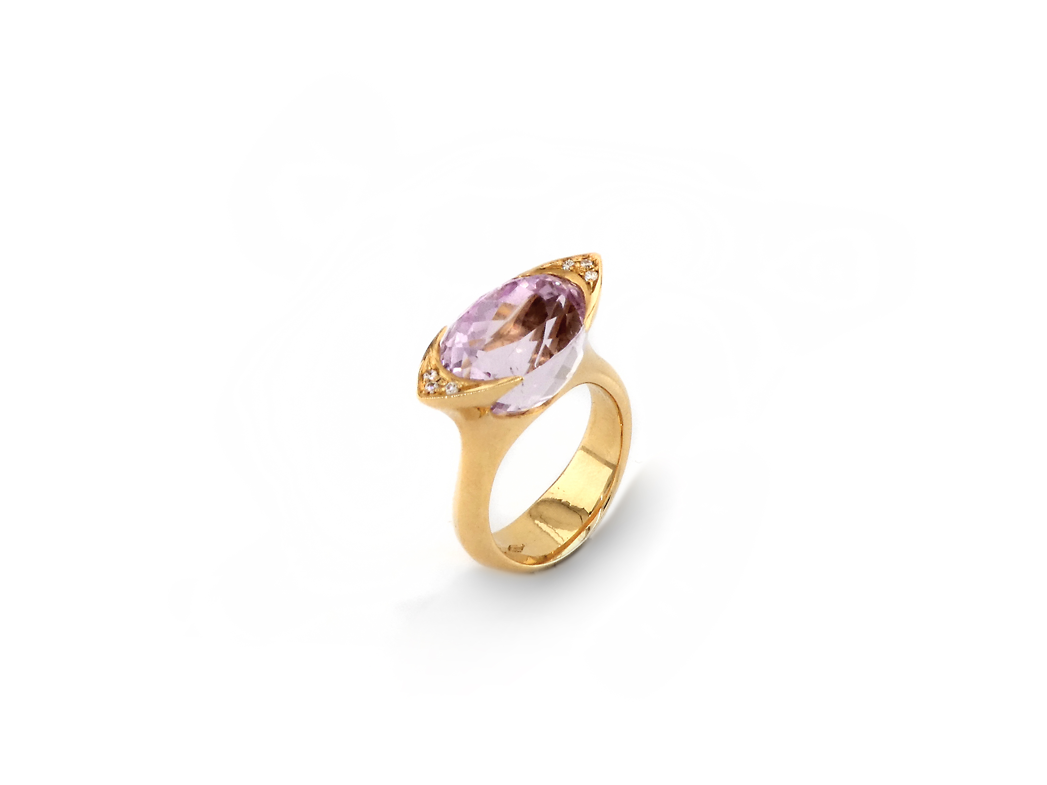 Baskania Rose Gold Ring with Kunzite & Diamond