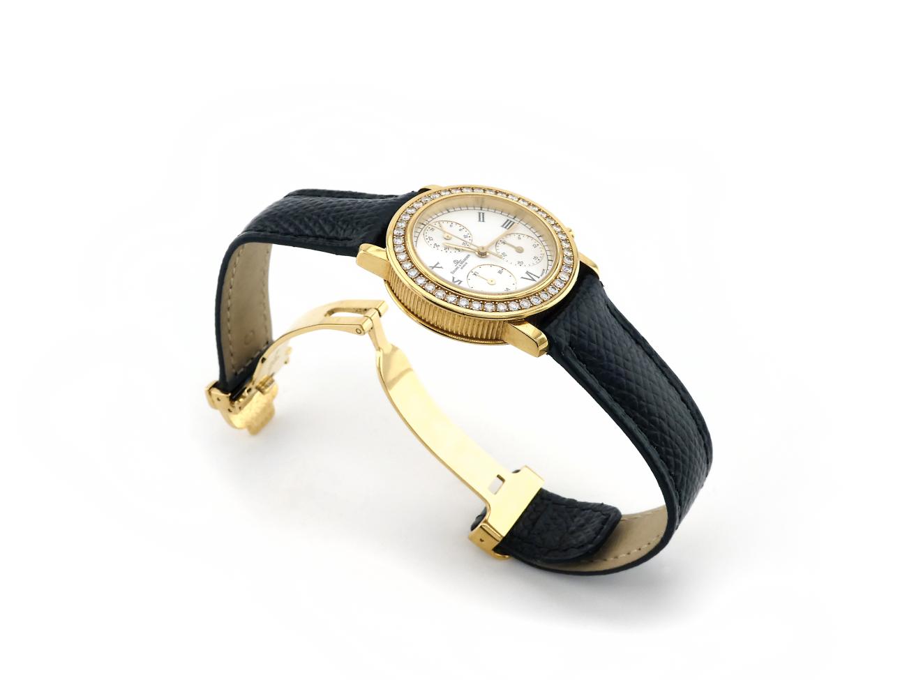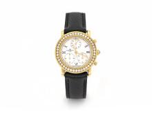 - case : 28.50mm, 18kt yellow gold, set with ca 1.00ct brilliant cut diamond F/VS (44 stones)