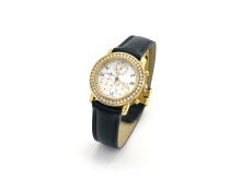 - dial : white with Roman numerals, gold coloured hands, 3 sub-dials