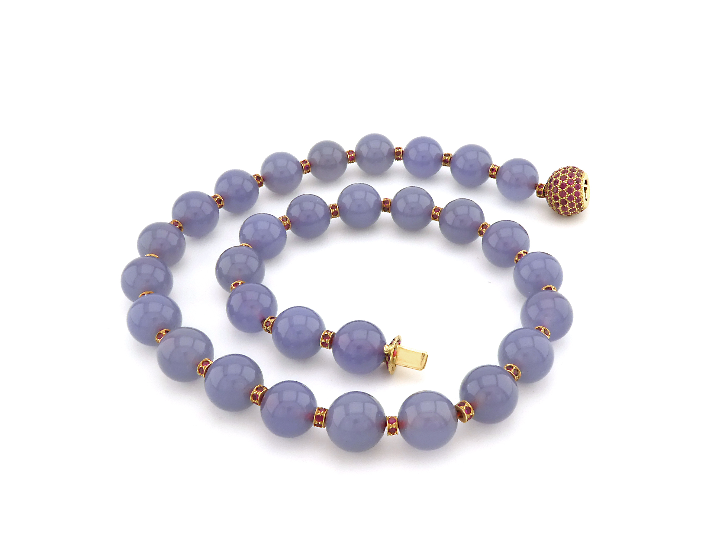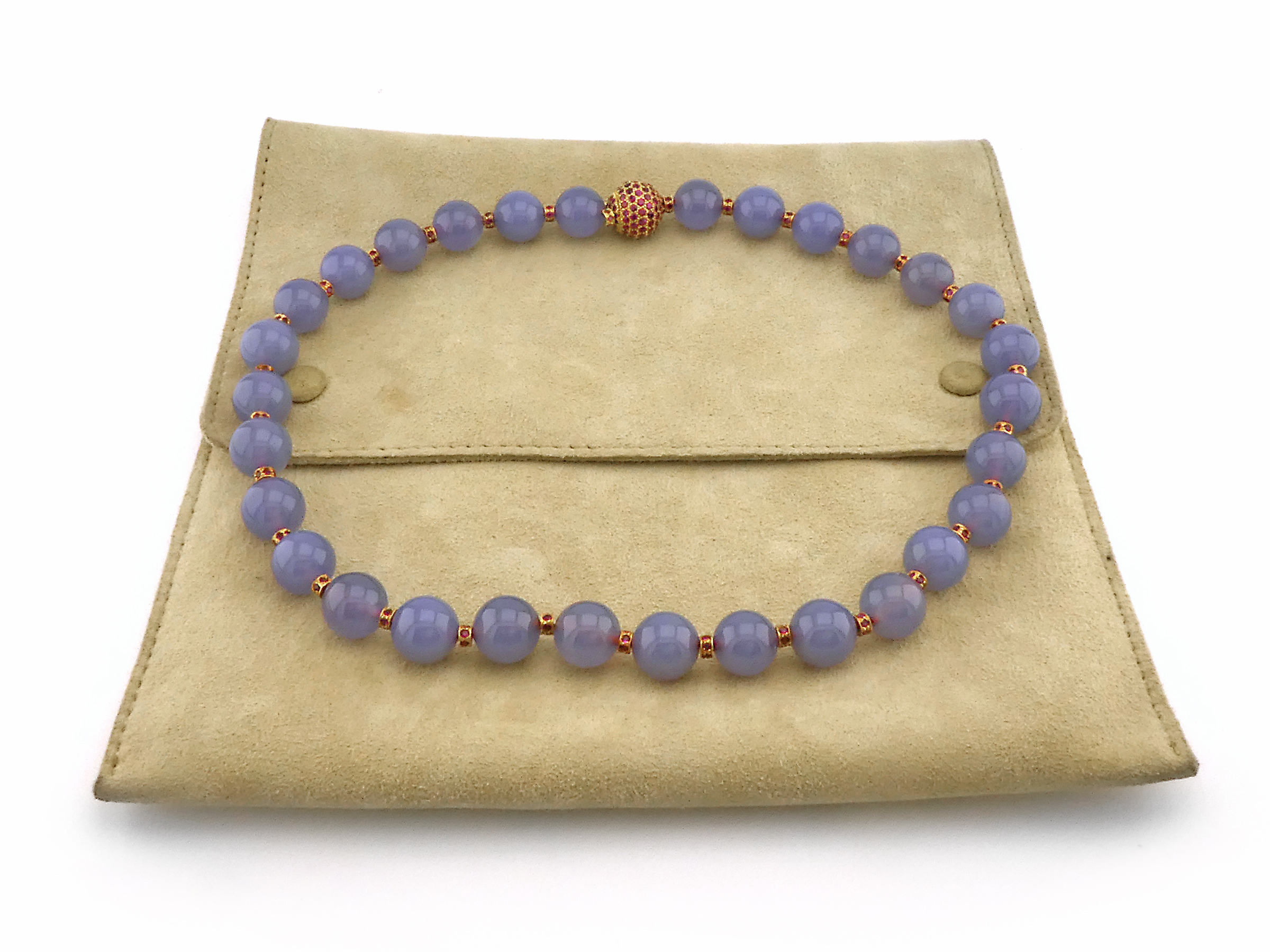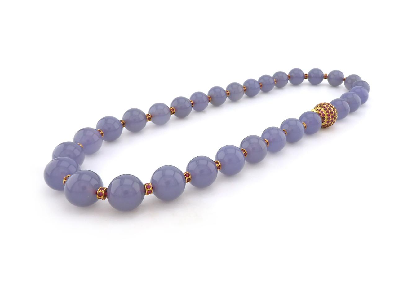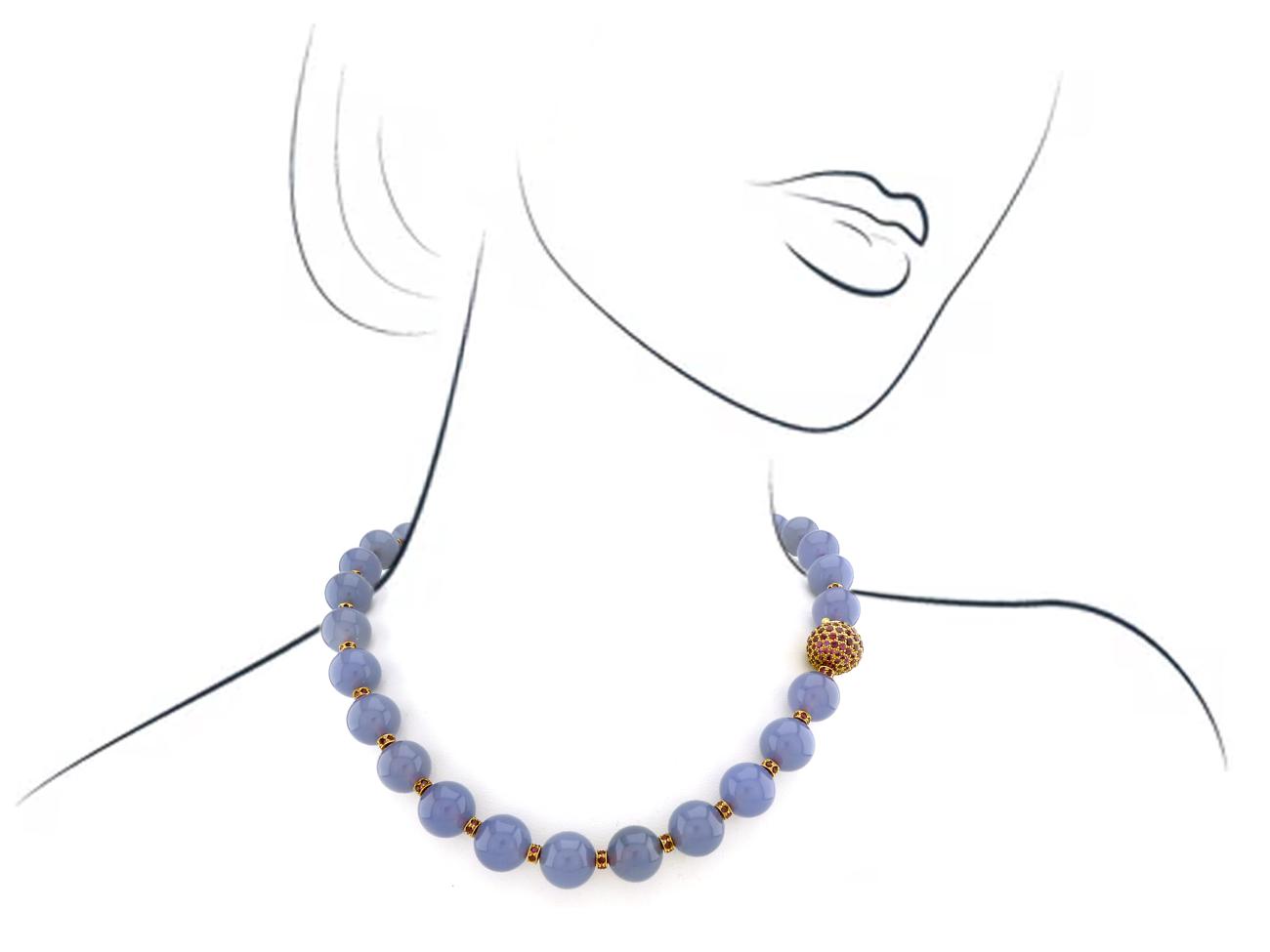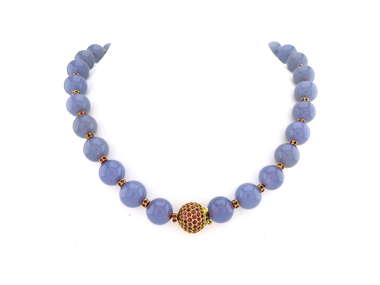 Chalcedony Necklace with Gold and Ruby