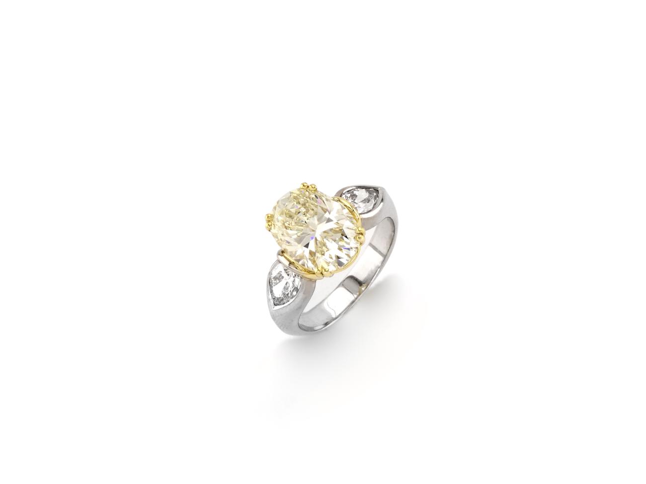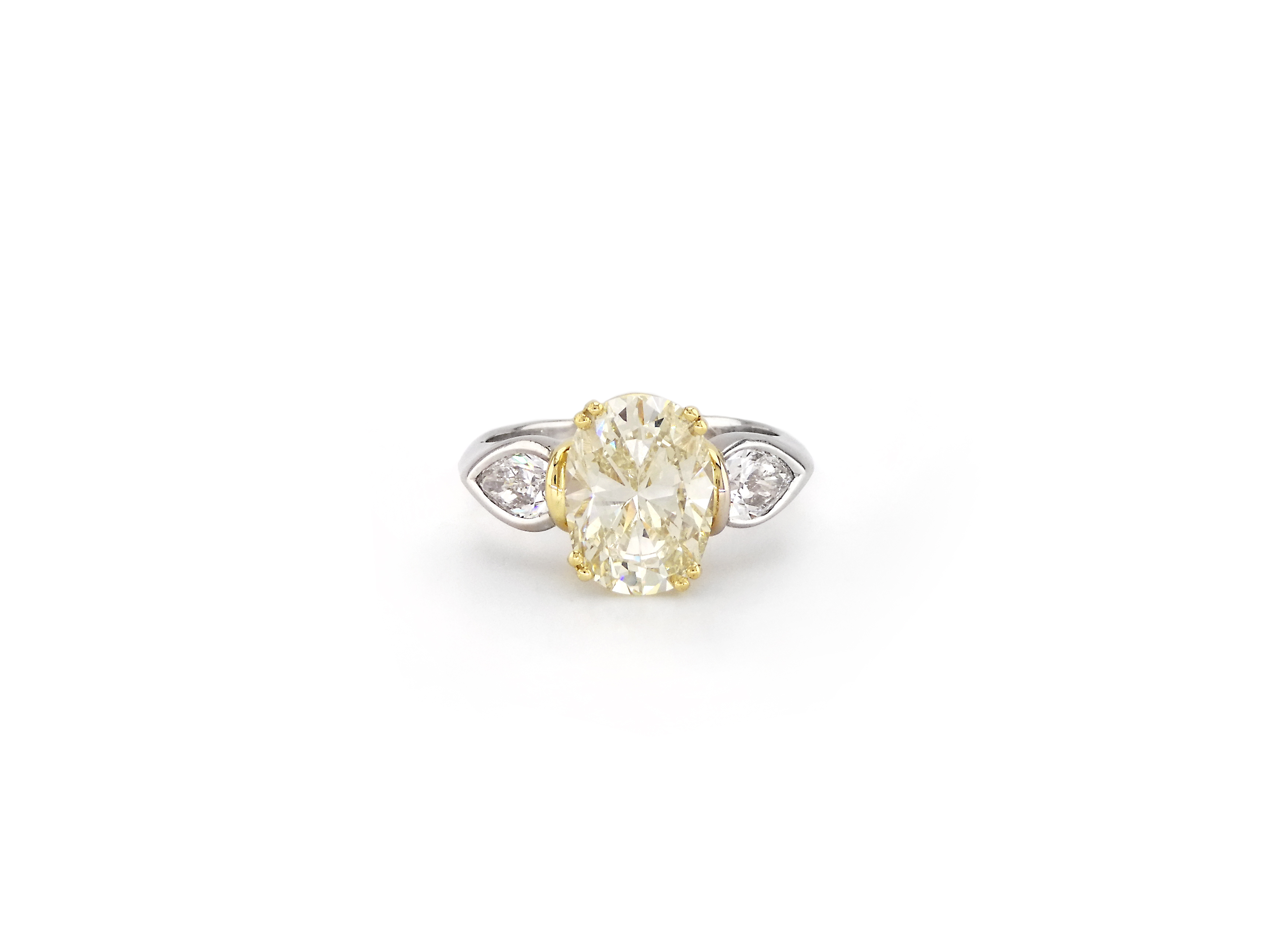 - diamond : 3.68ct oval cut J/VVS1 (center stone)