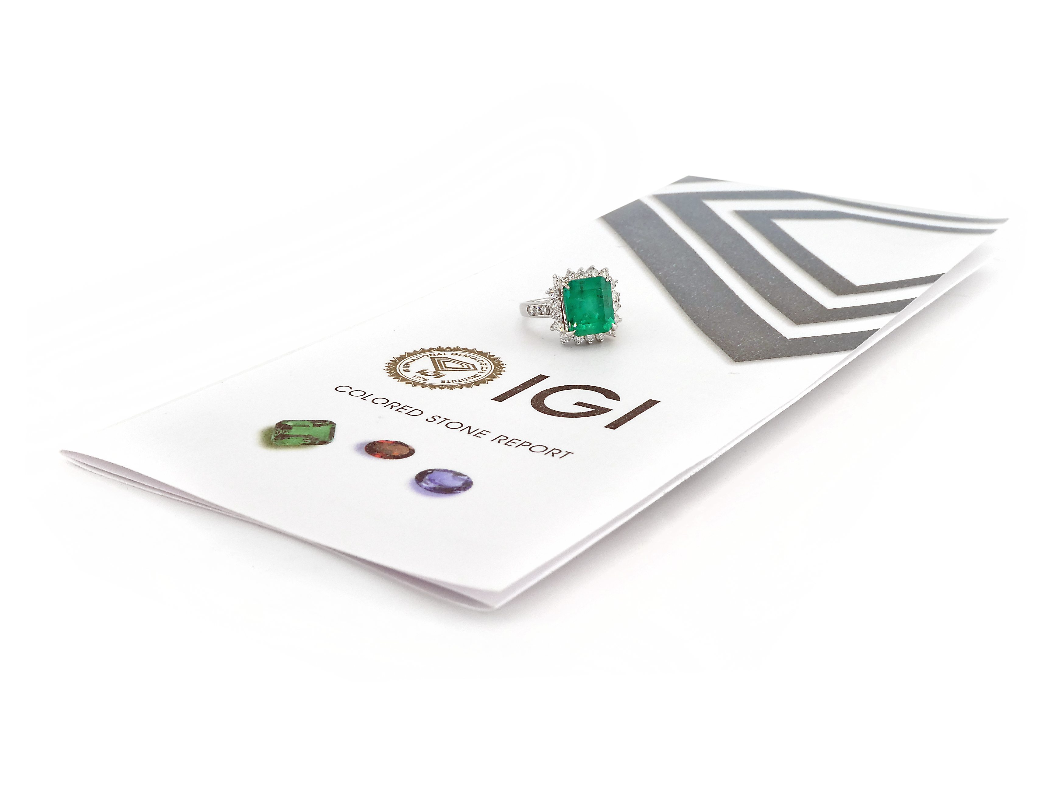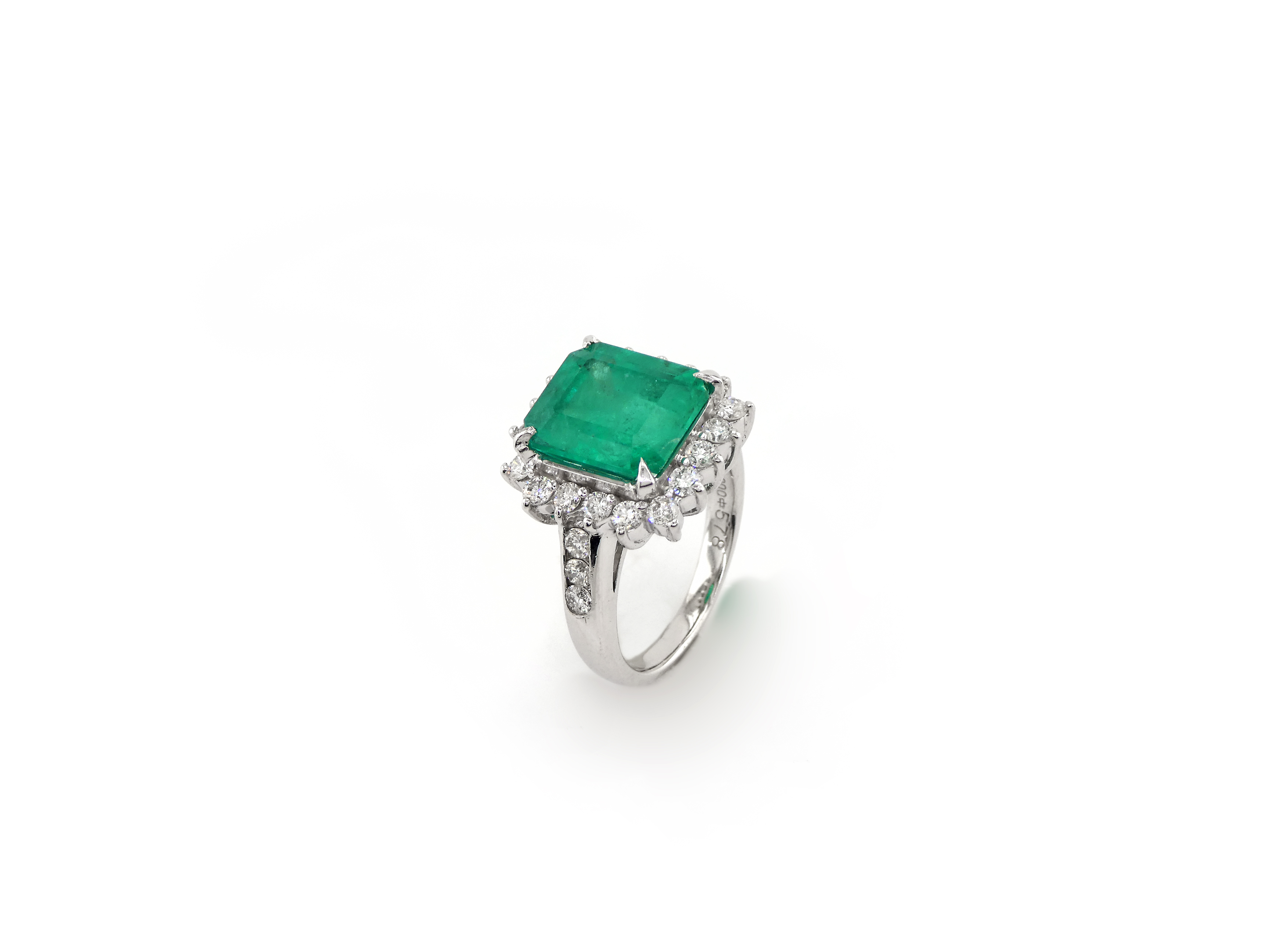 - emerald : ca 5.78ct emerald cut, origin Columbia (central stone)