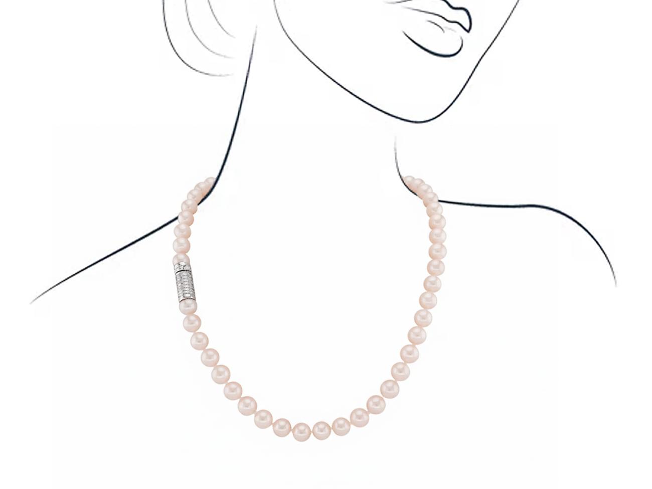 Pearl Necklace with White Gold Lock & Diamond