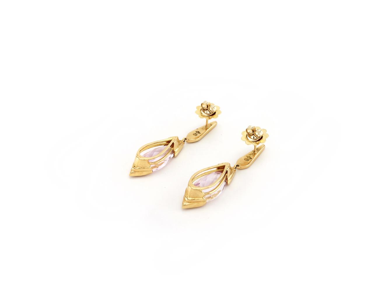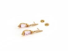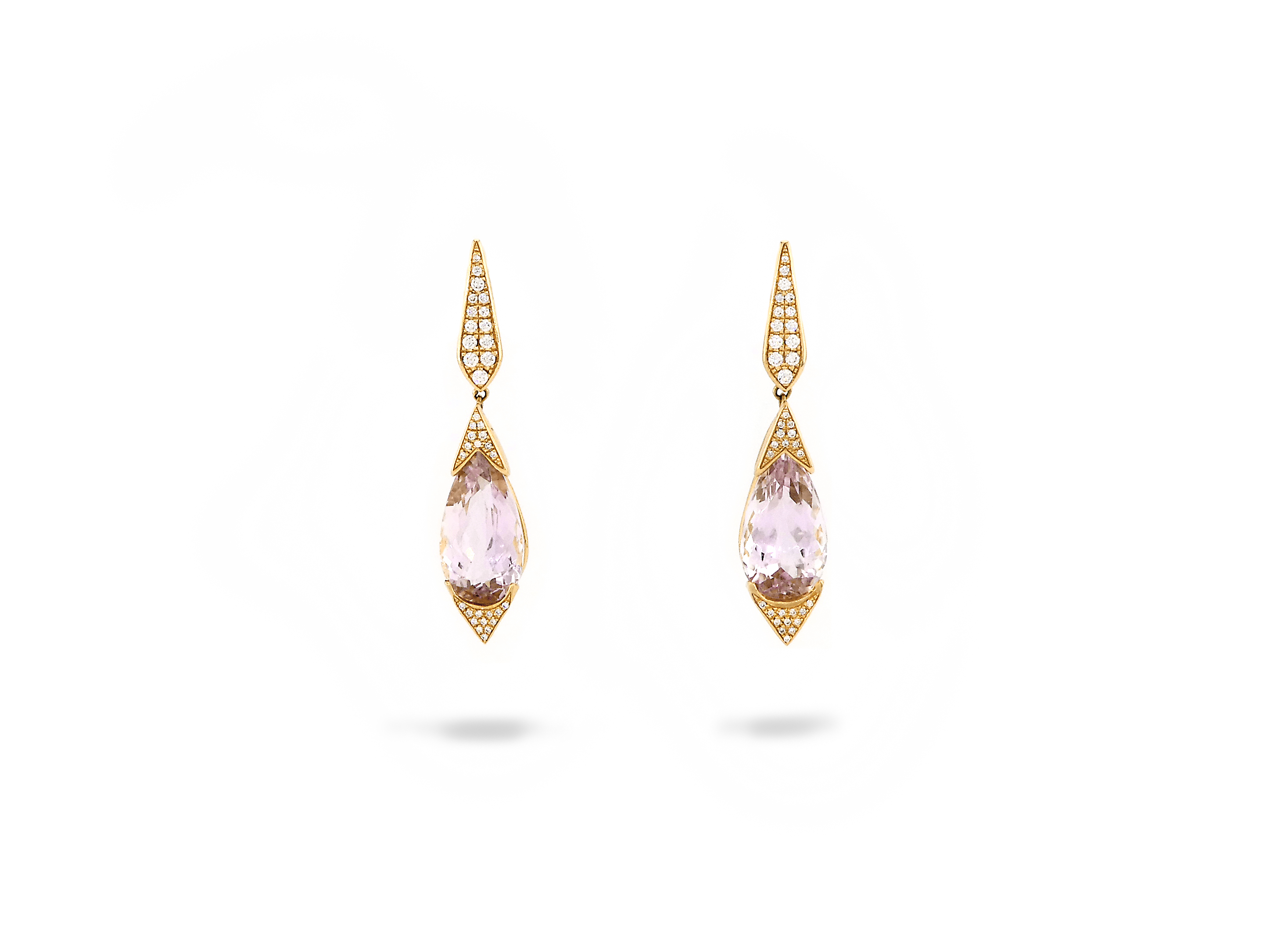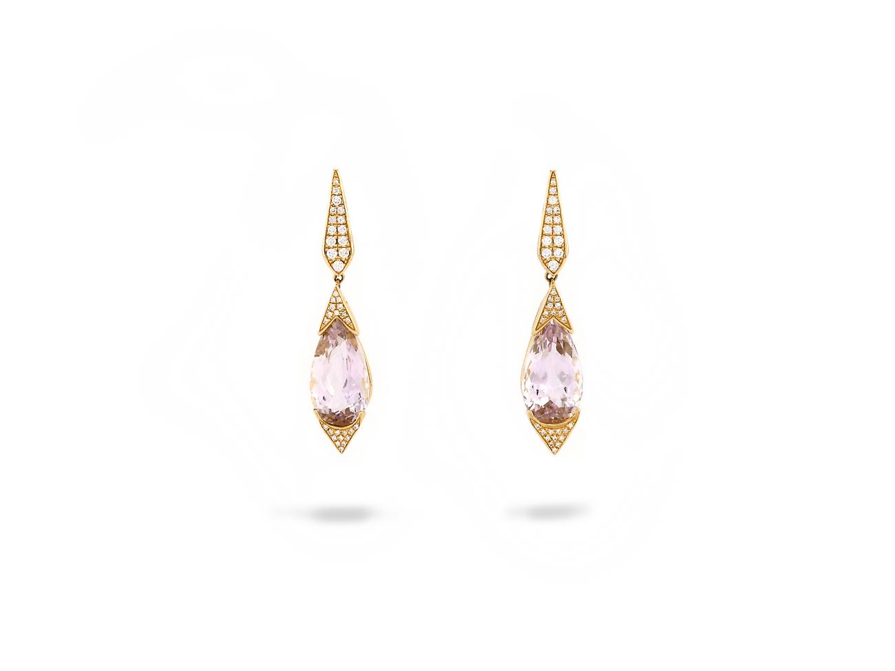 Rose Gold Earrings with Kunzite and Diamond "Baskania"