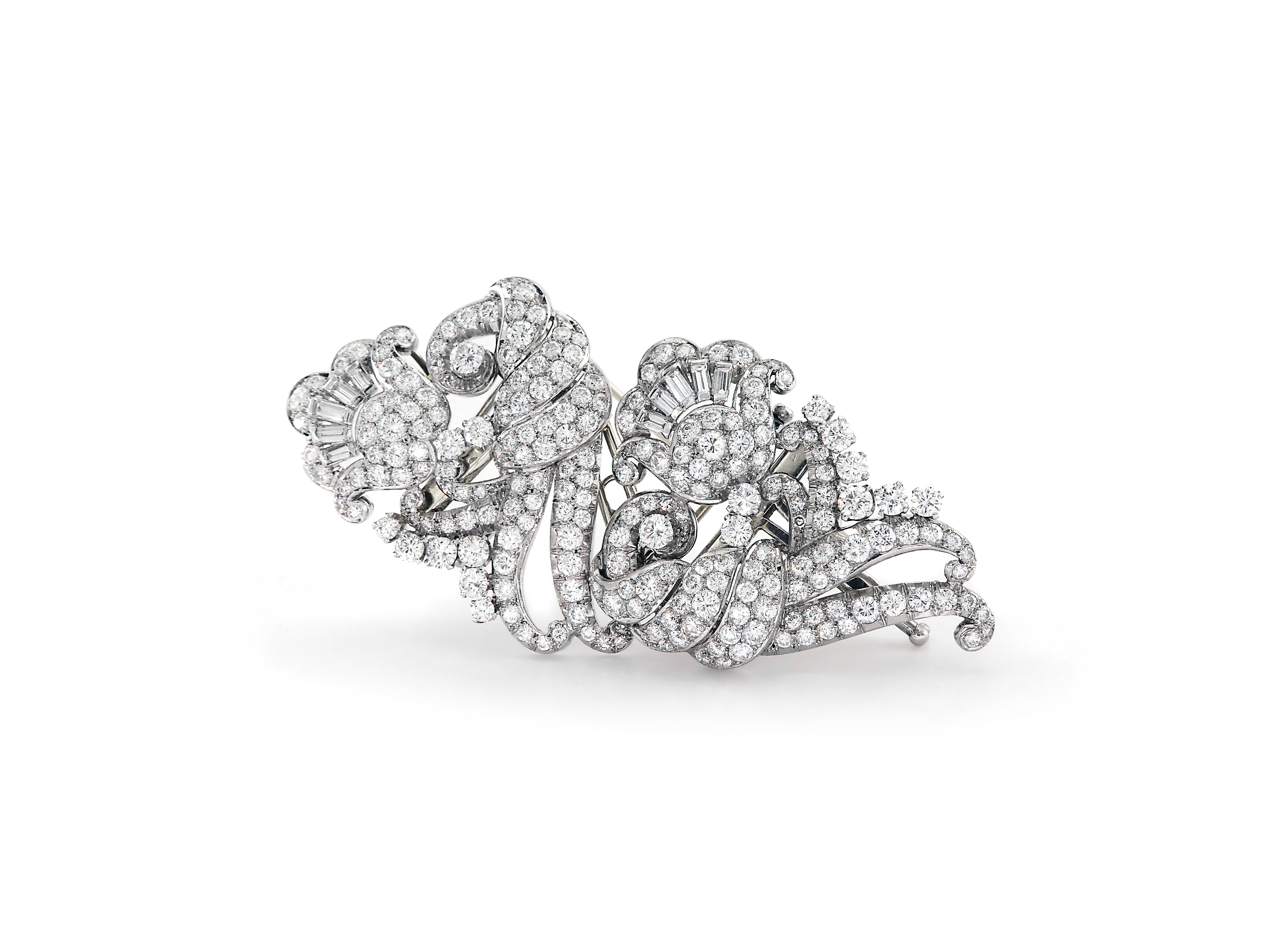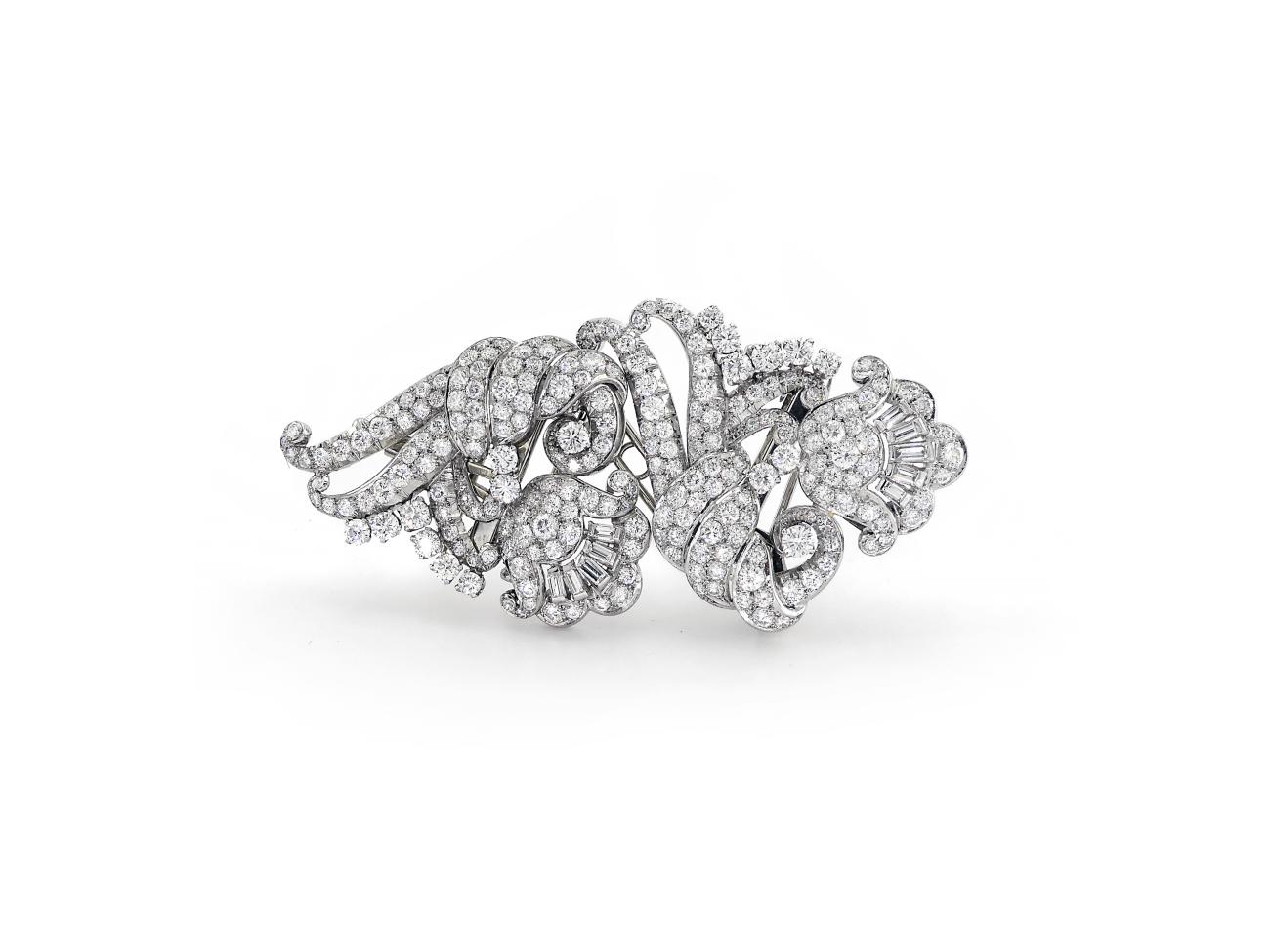 Vintage White Gold Brooch with Diamond