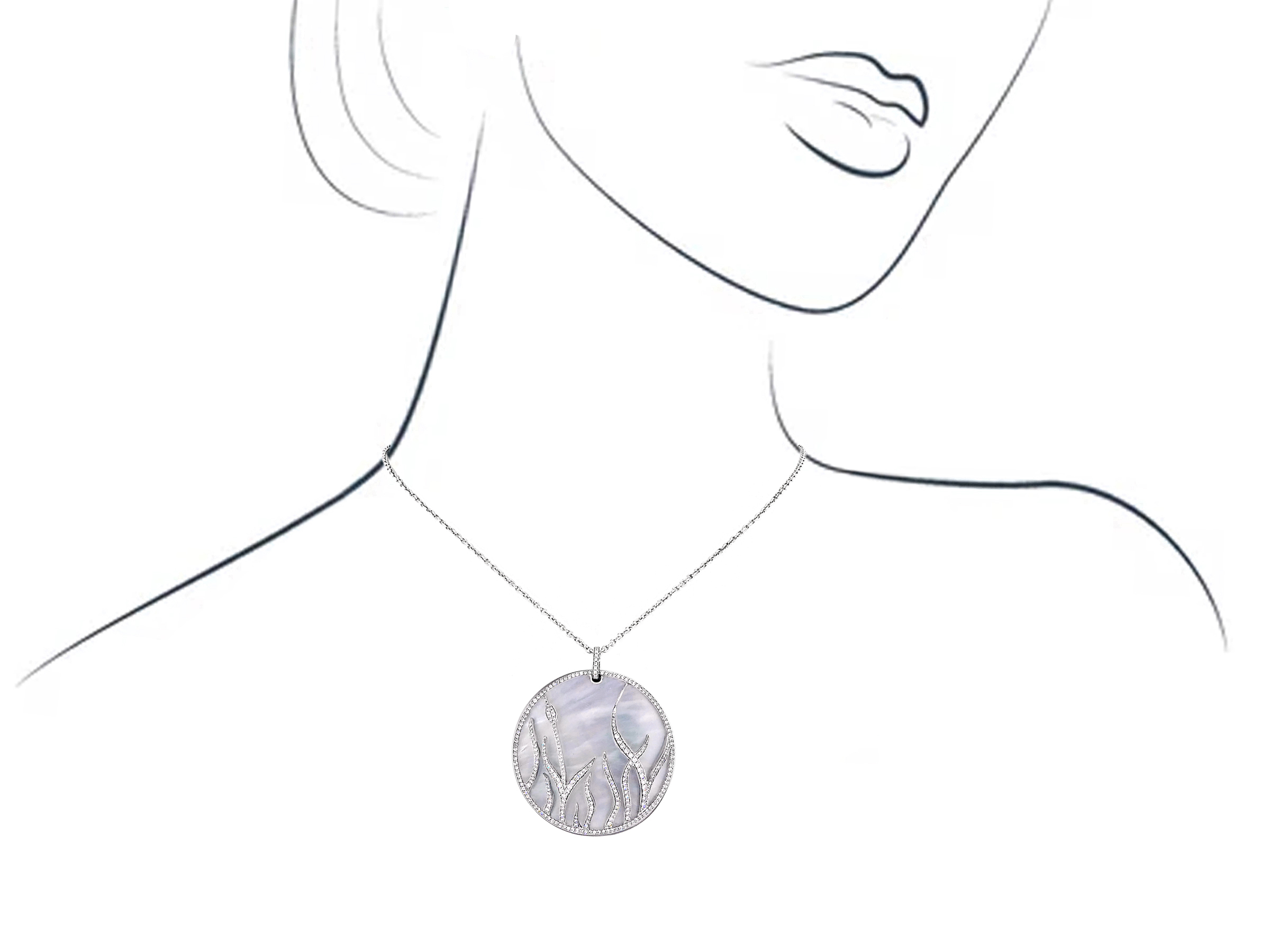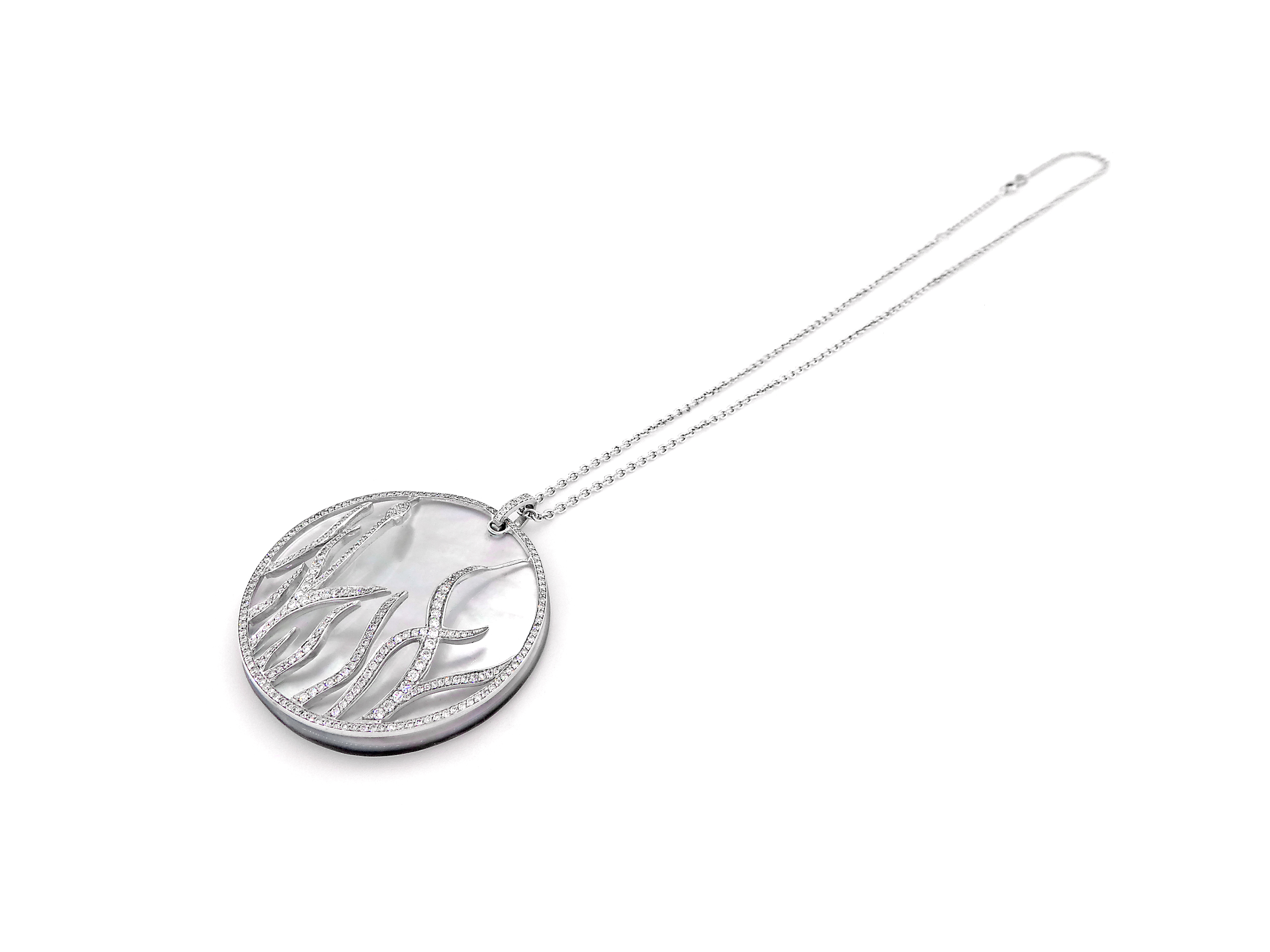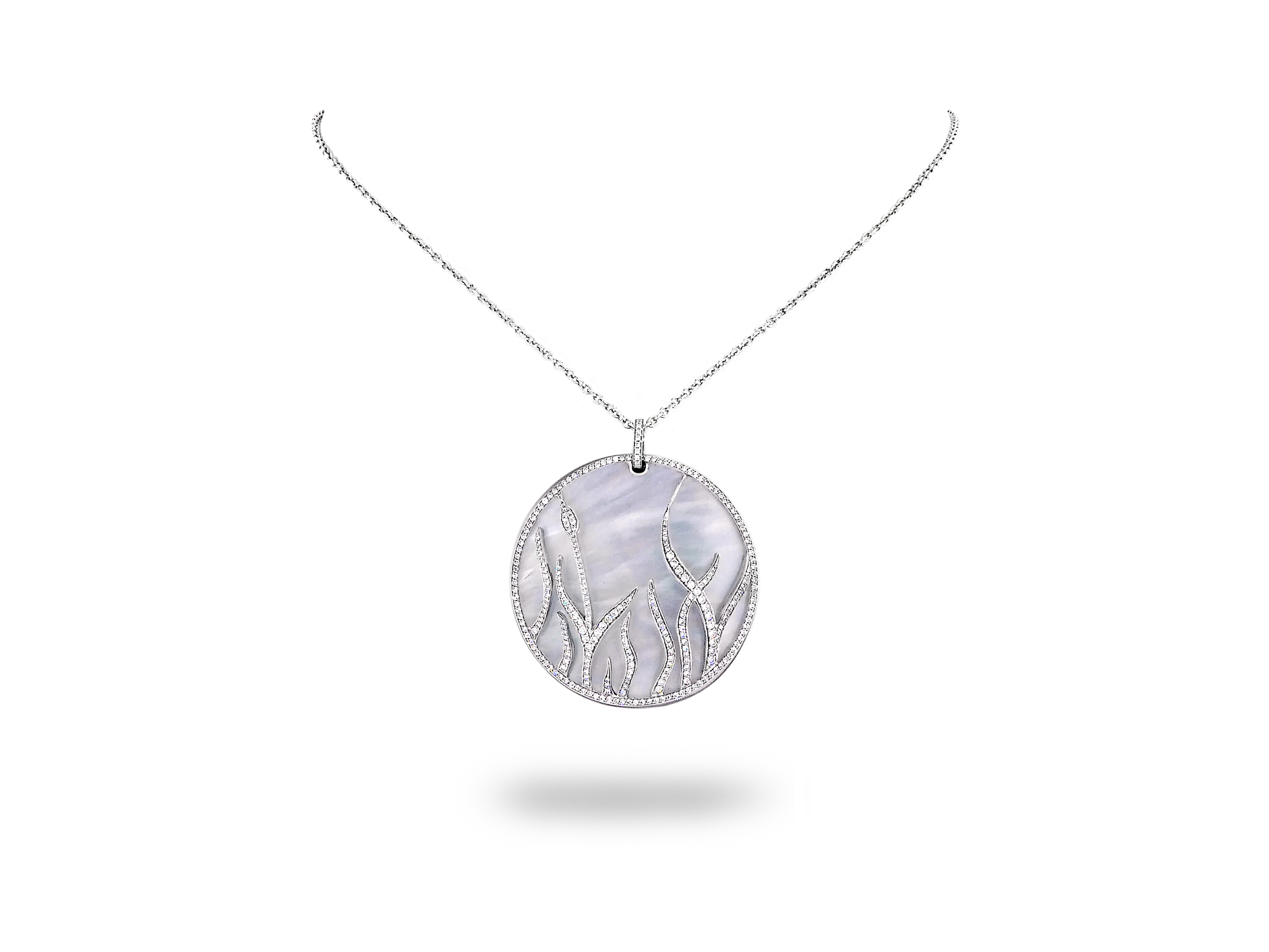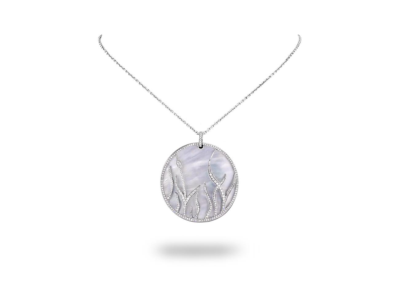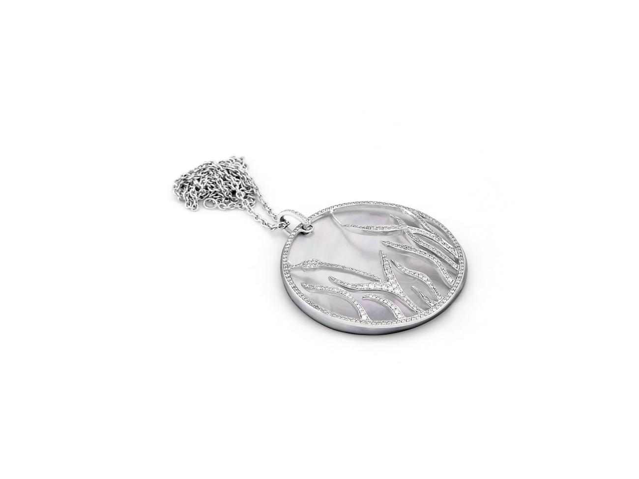 White Gold Pendant with Diamond and Mother of Pearl on Chain "Baskania"