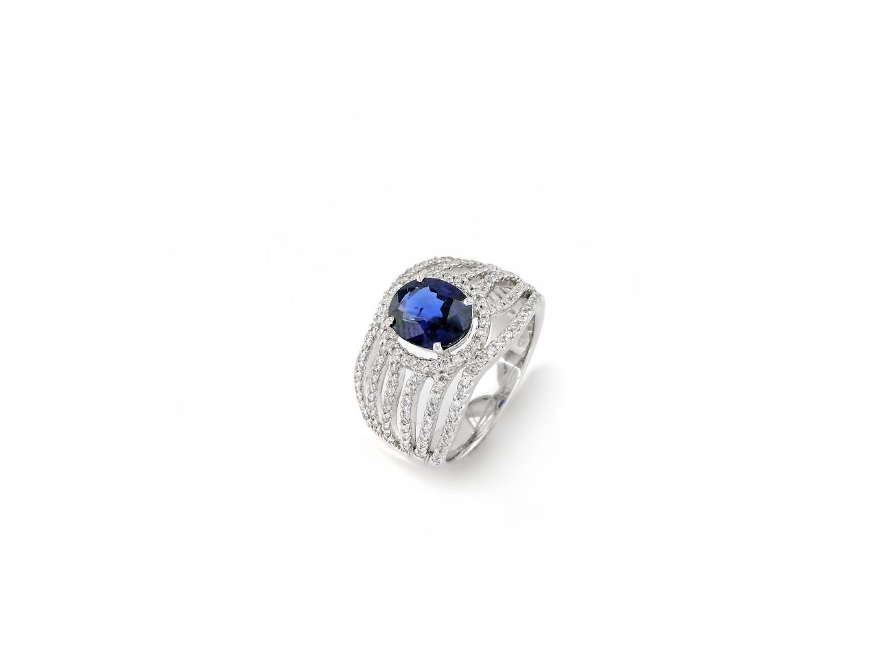 White Gold Ring with Sapphire & Diamond