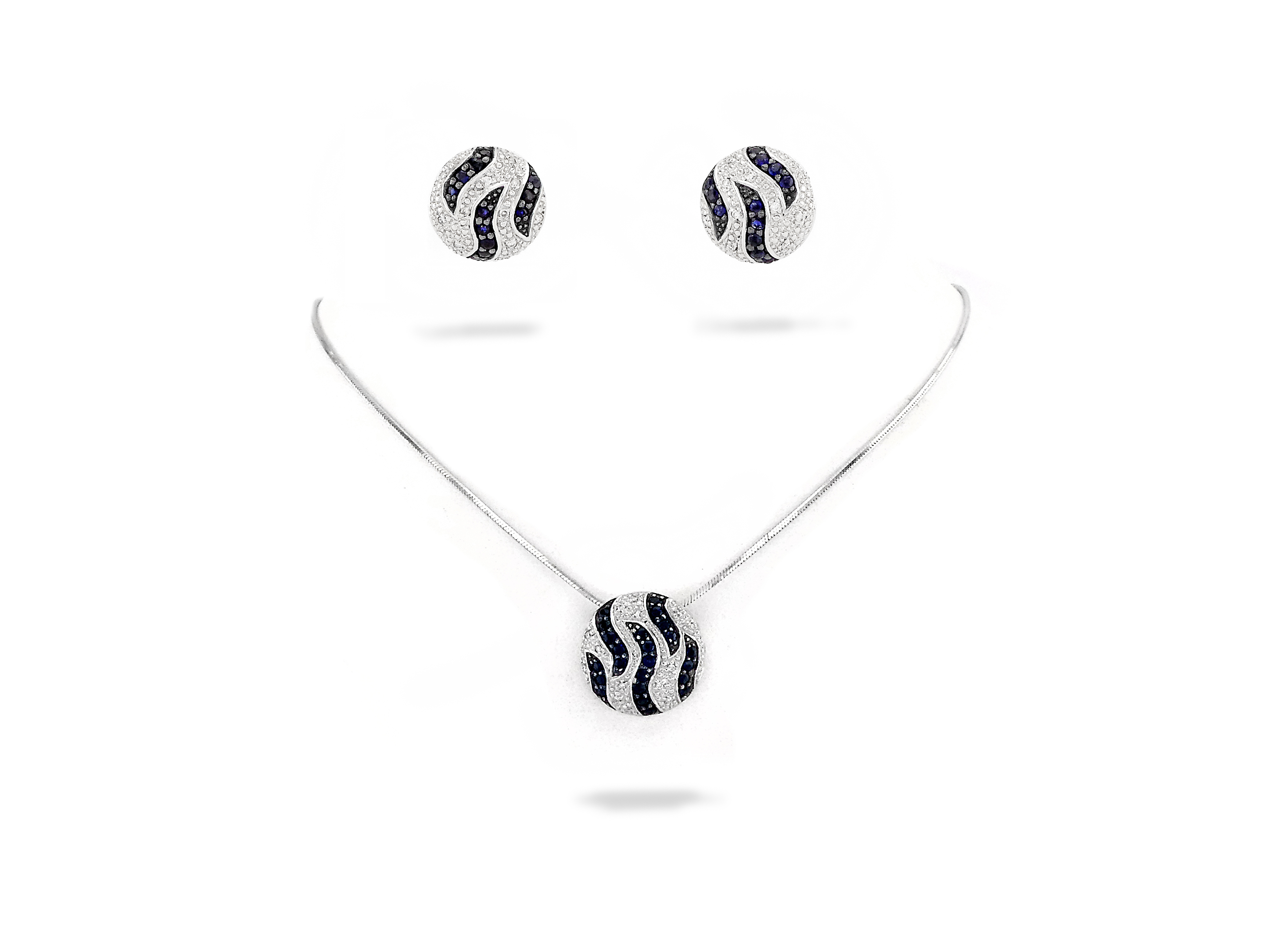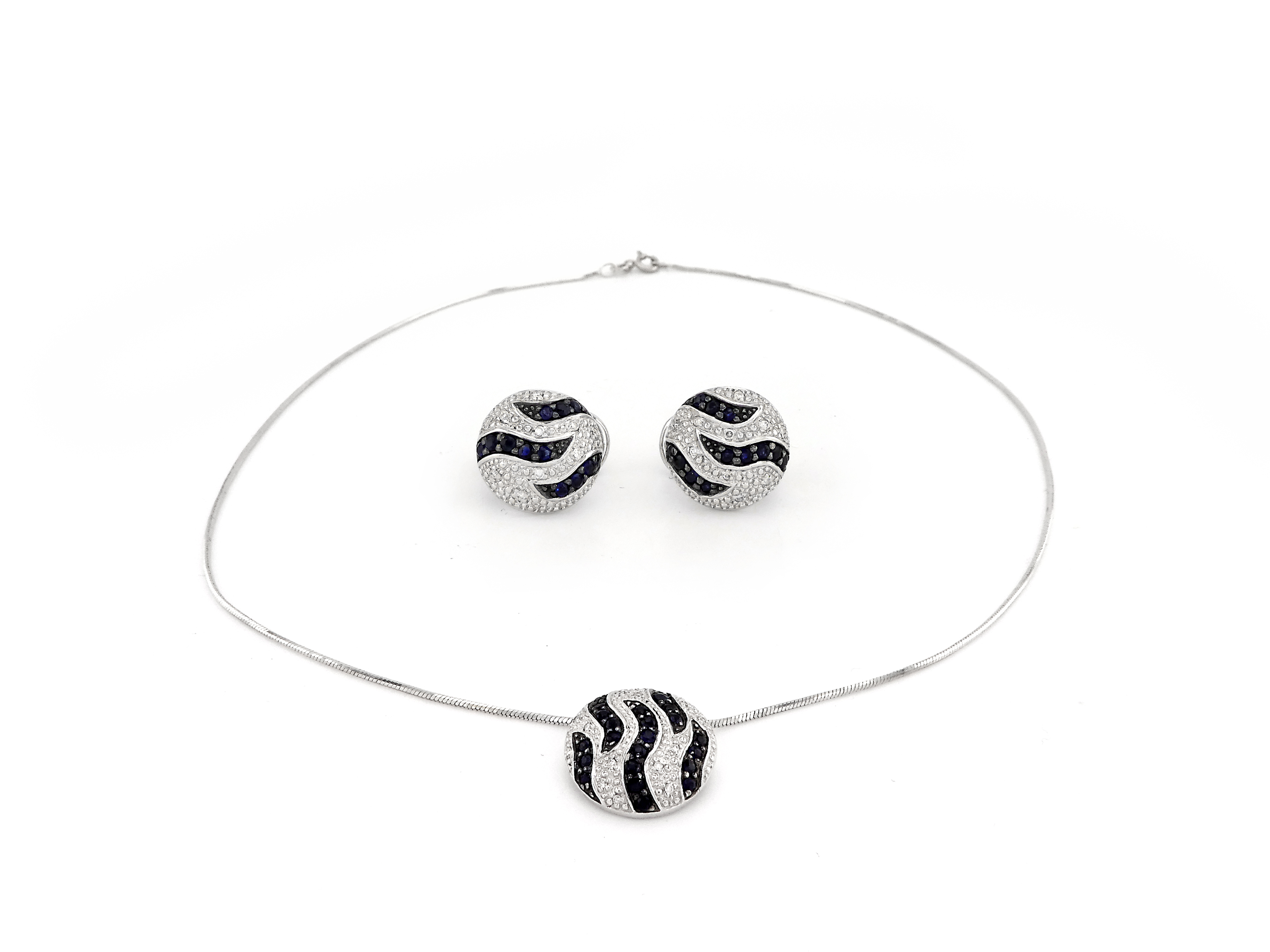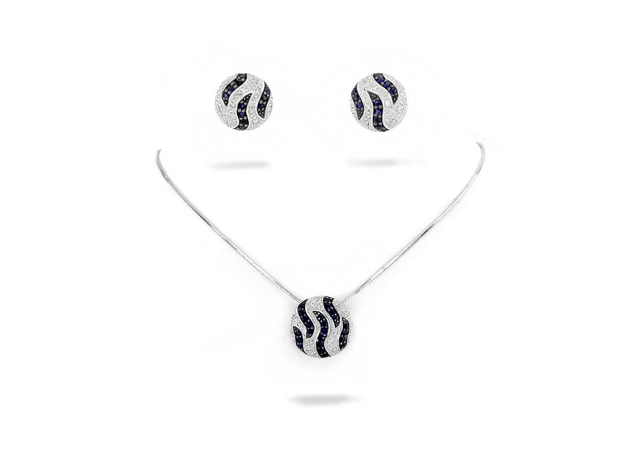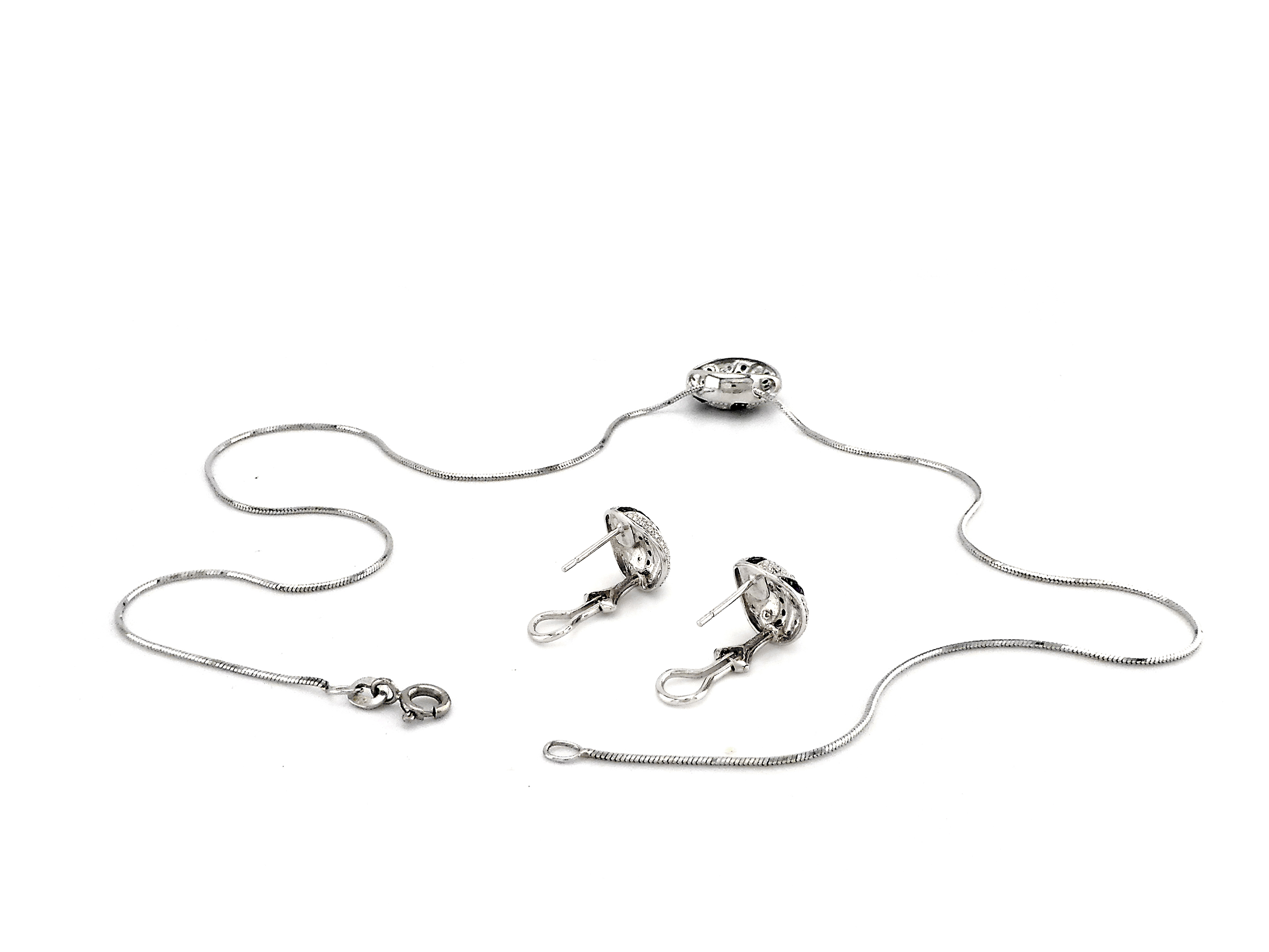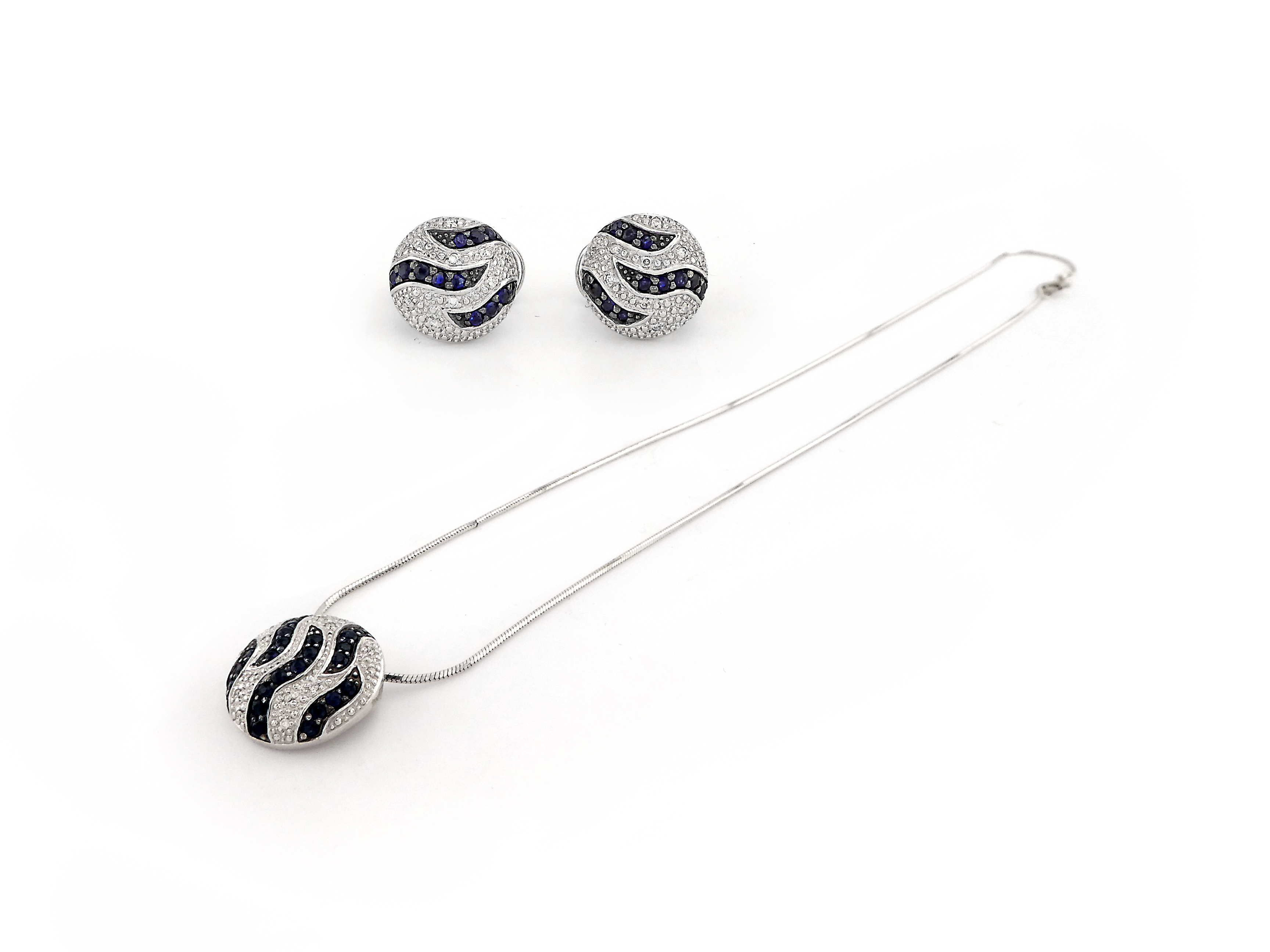 White Gold Set Earrings and Pendant on Chain with Diamond and Sapphire