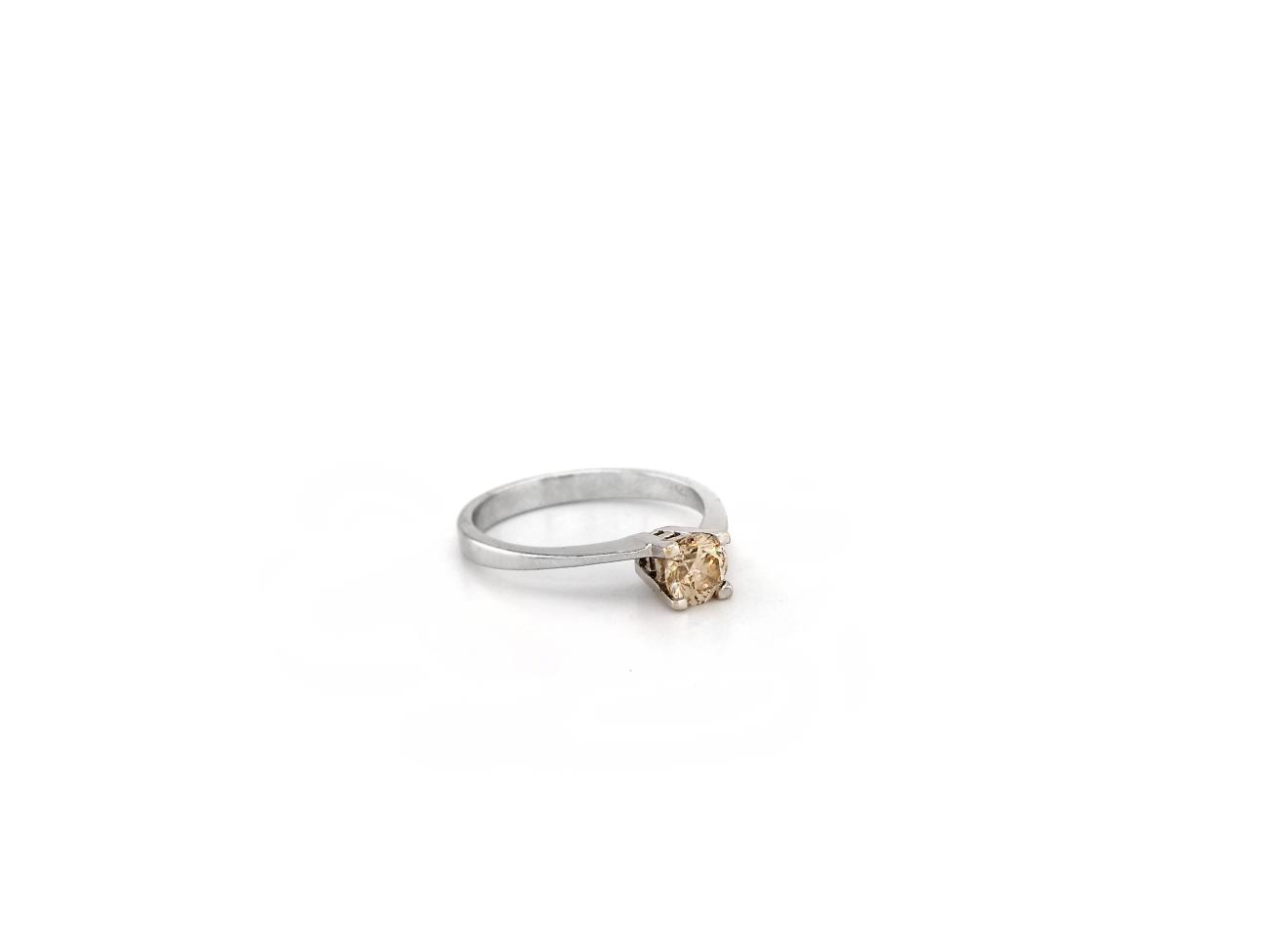 White Gold Solitaire Ring witch Cognac Diamond