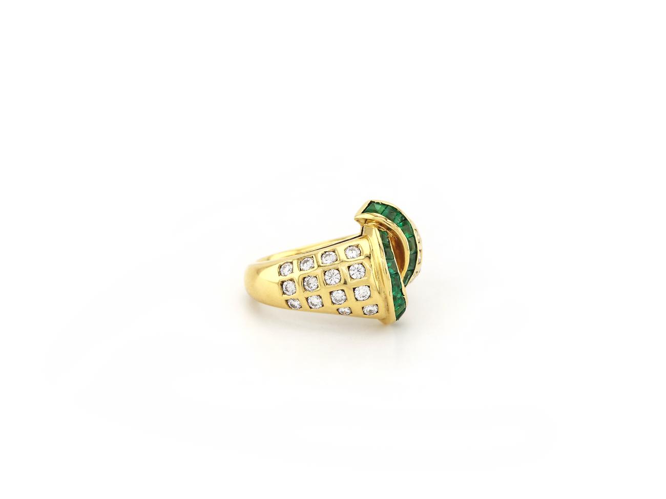 Yellow Gold Ring with Diamond and Emerald by Baskania