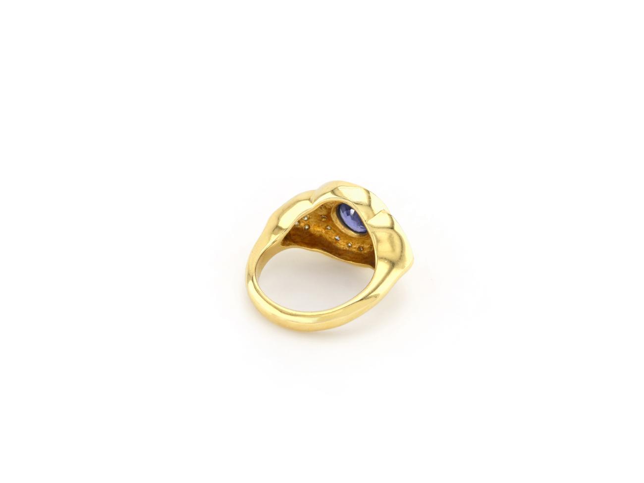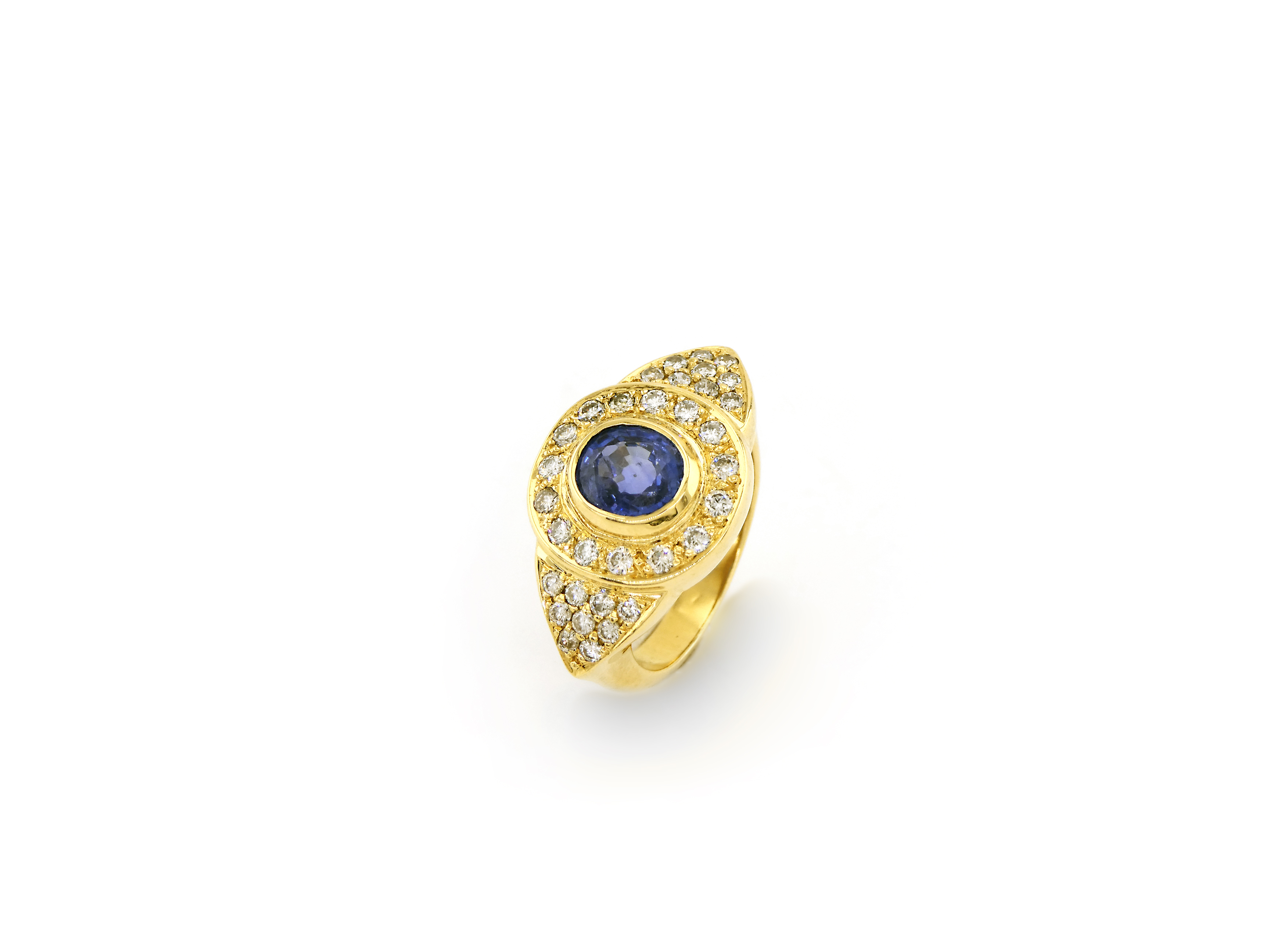 Yellow Gold Ring with Diamond and Sapphire