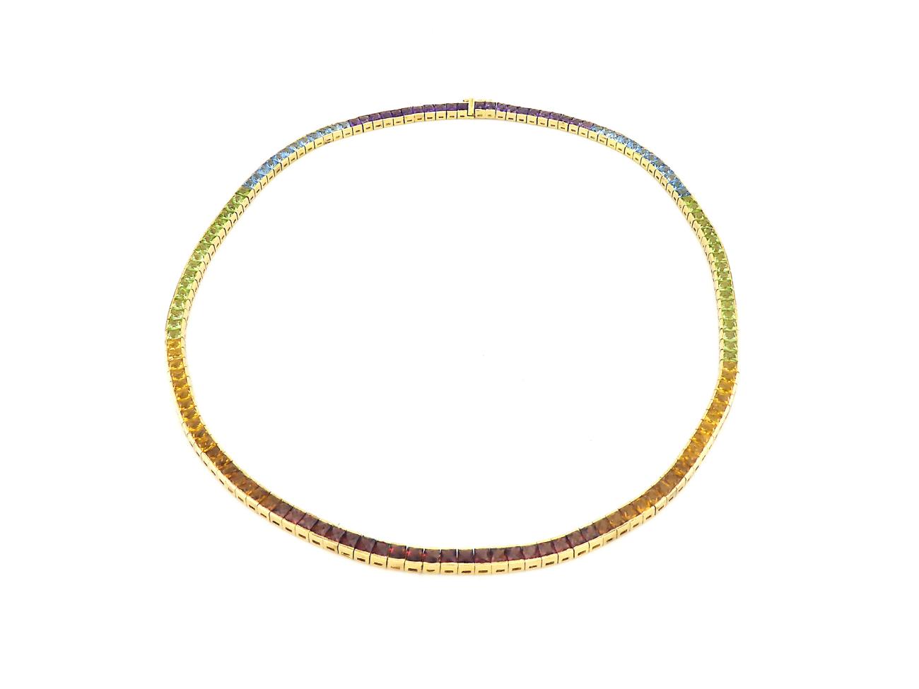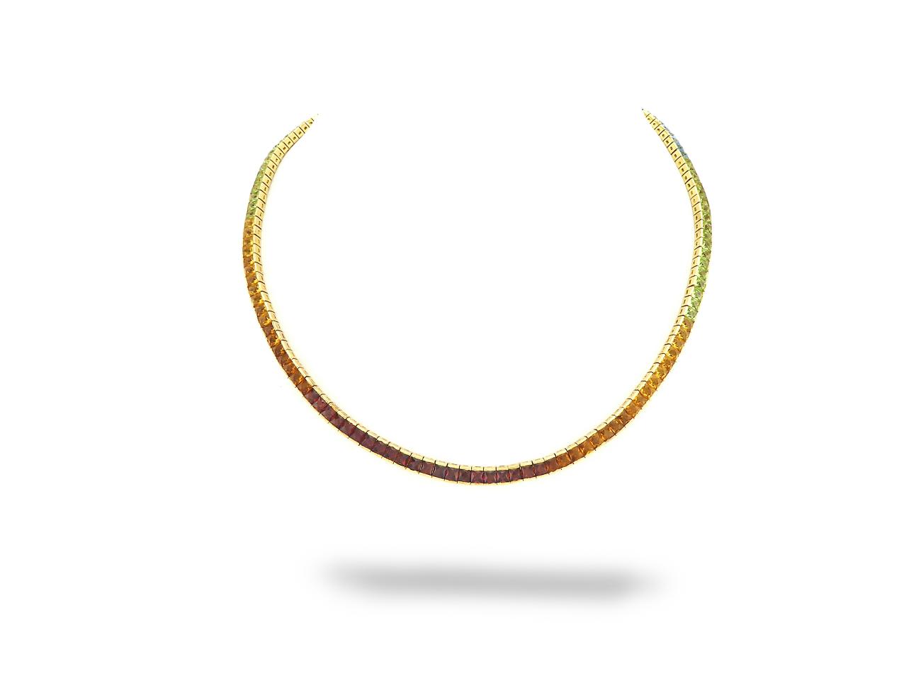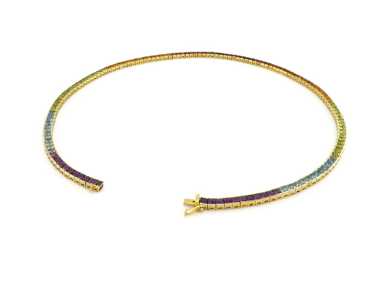 Geelgouden Tennis Ketting met Kleursteen