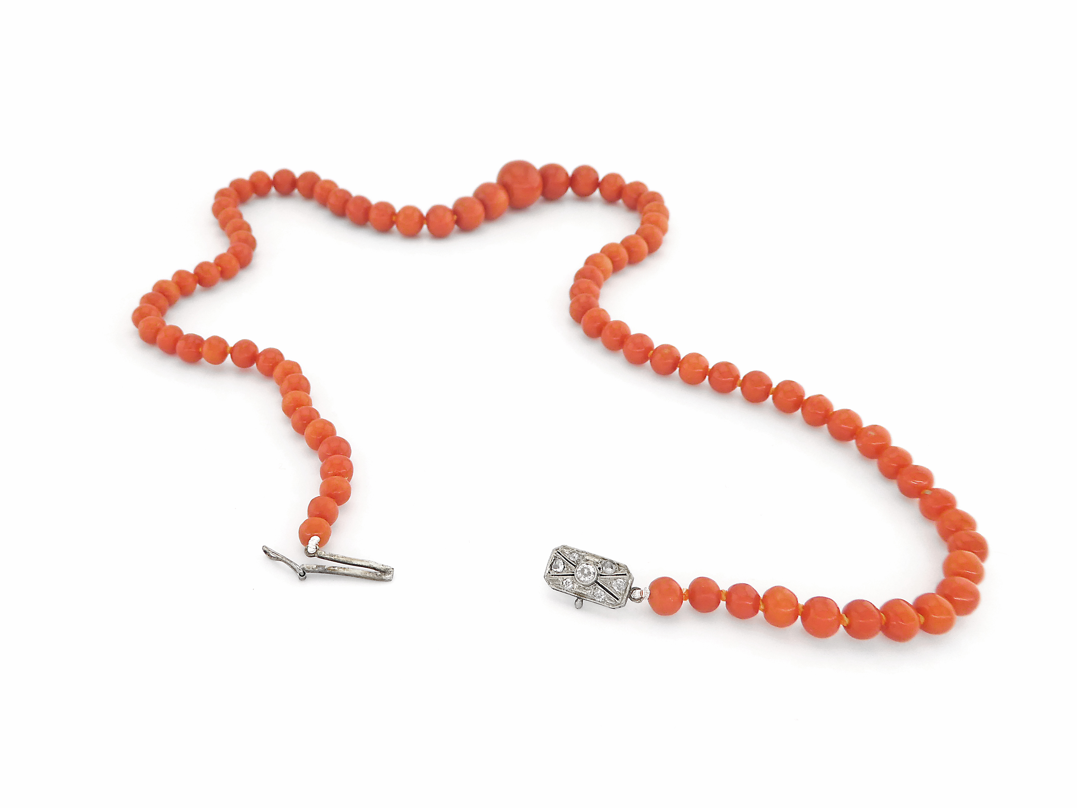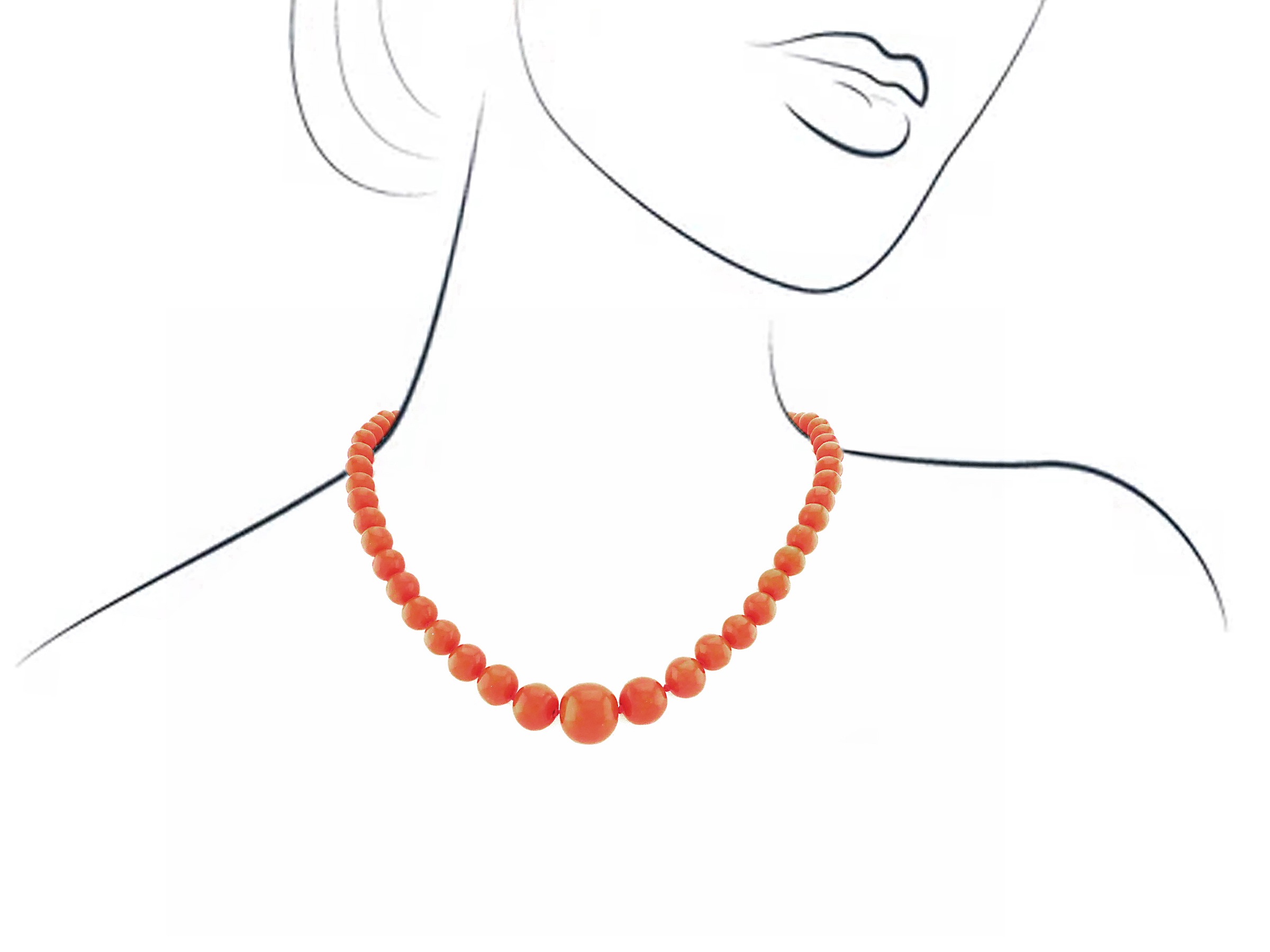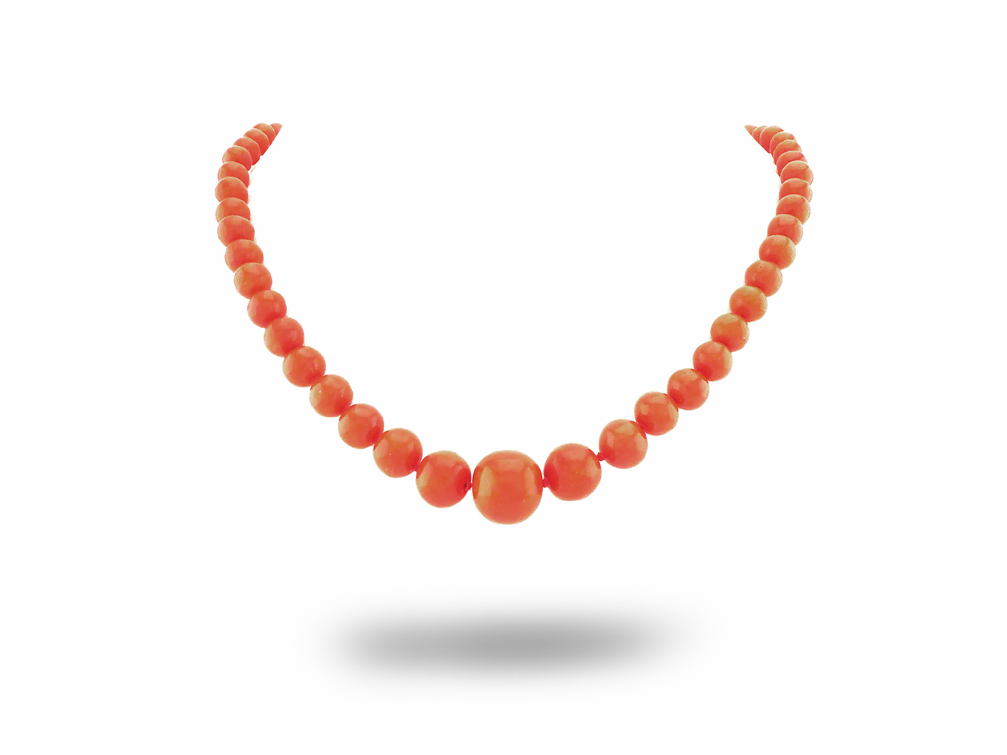 - koraal : 81 koraalparels gaande van 4.65mm tot 12.35mm